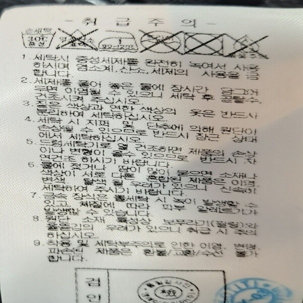 세탁방법 및 취급시 주의사항 : 상세 참조