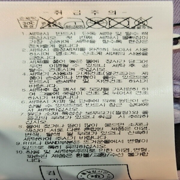 세탁방법 및 취급시 주의사항 : 상세 참조