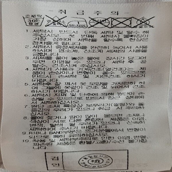 세탁방법 및 취급시 주의사항 : 상세 참조