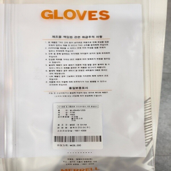 머렐 MLU3A4GV1203 님여공용 테그 글러브