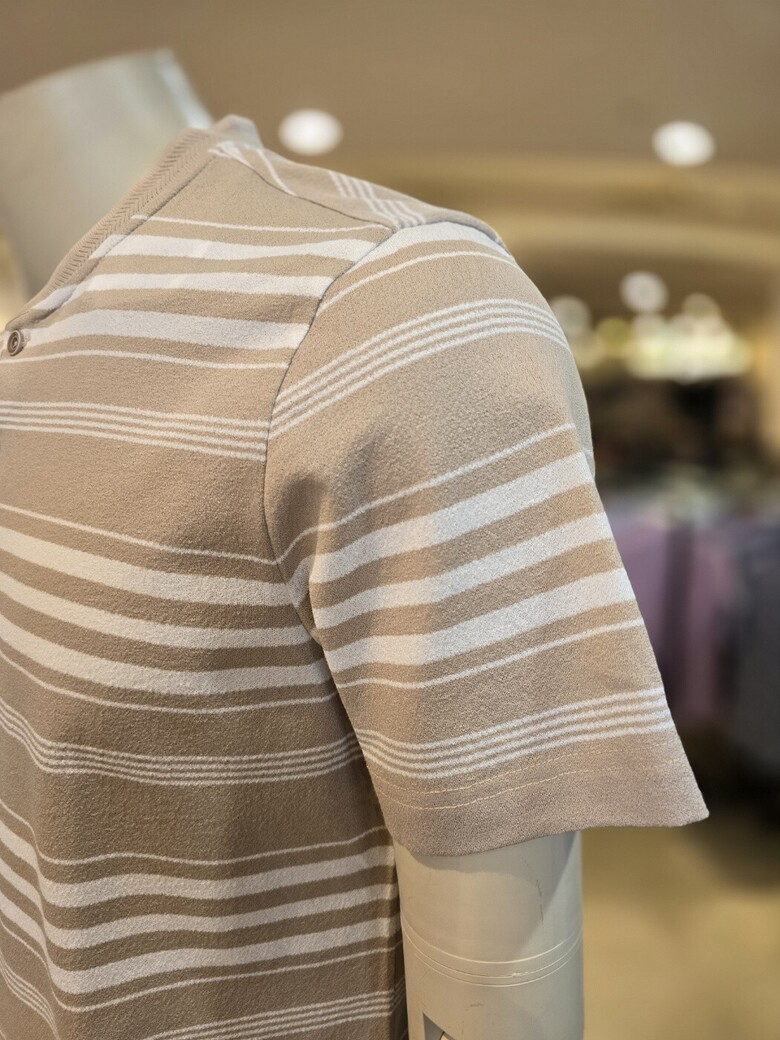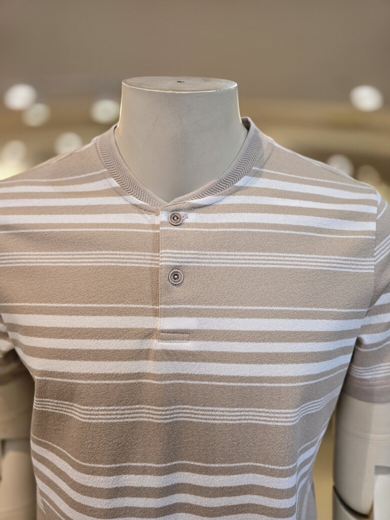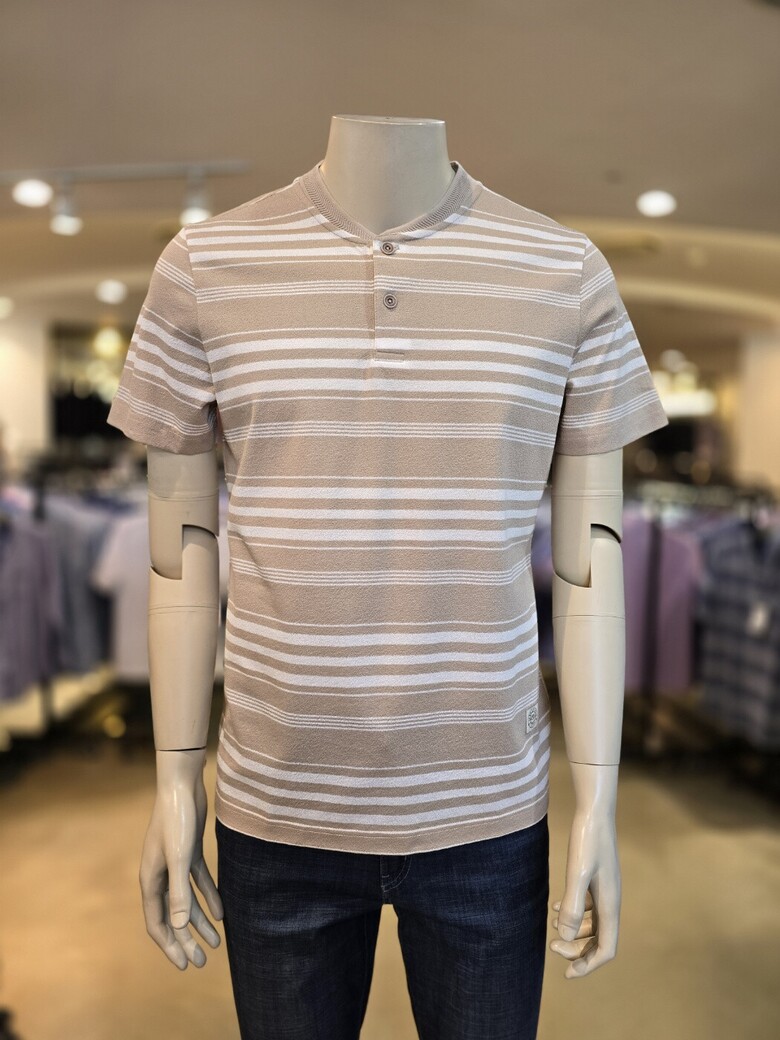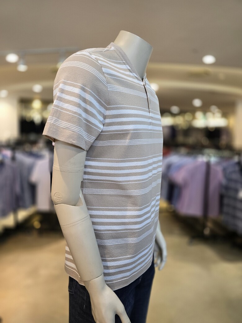 헨리넥에 단추디자인이 편안하고 가로스트라이프로 깔끔하면서 멋스러워요
