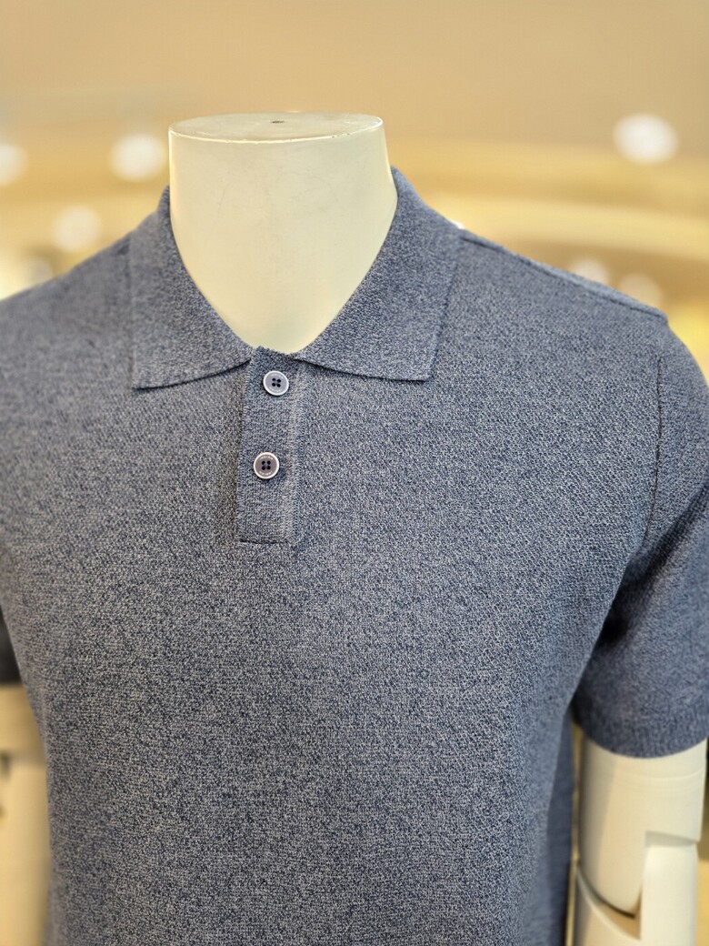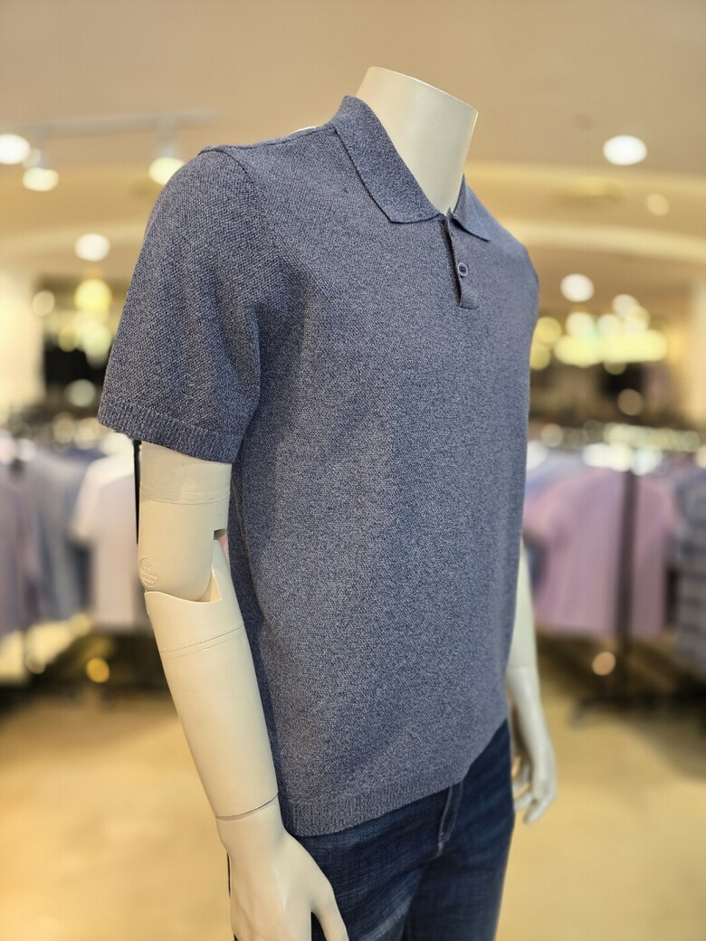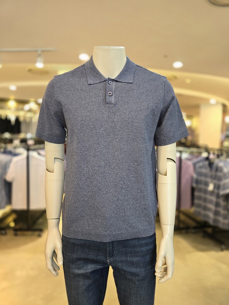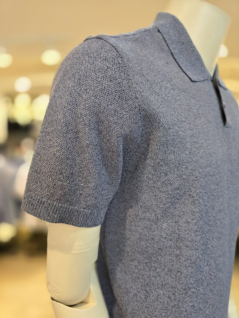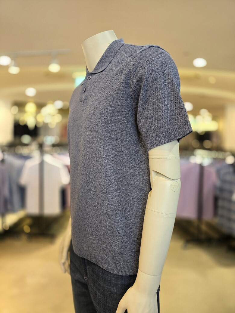 면 혼방으로 터치감이 부드러운 여름 고급 카라넥 반팔 니트입니다.