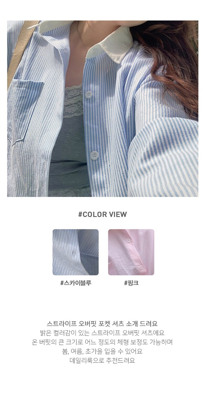 [~77까지]스트라이프 오버핏 포켓 셔츠