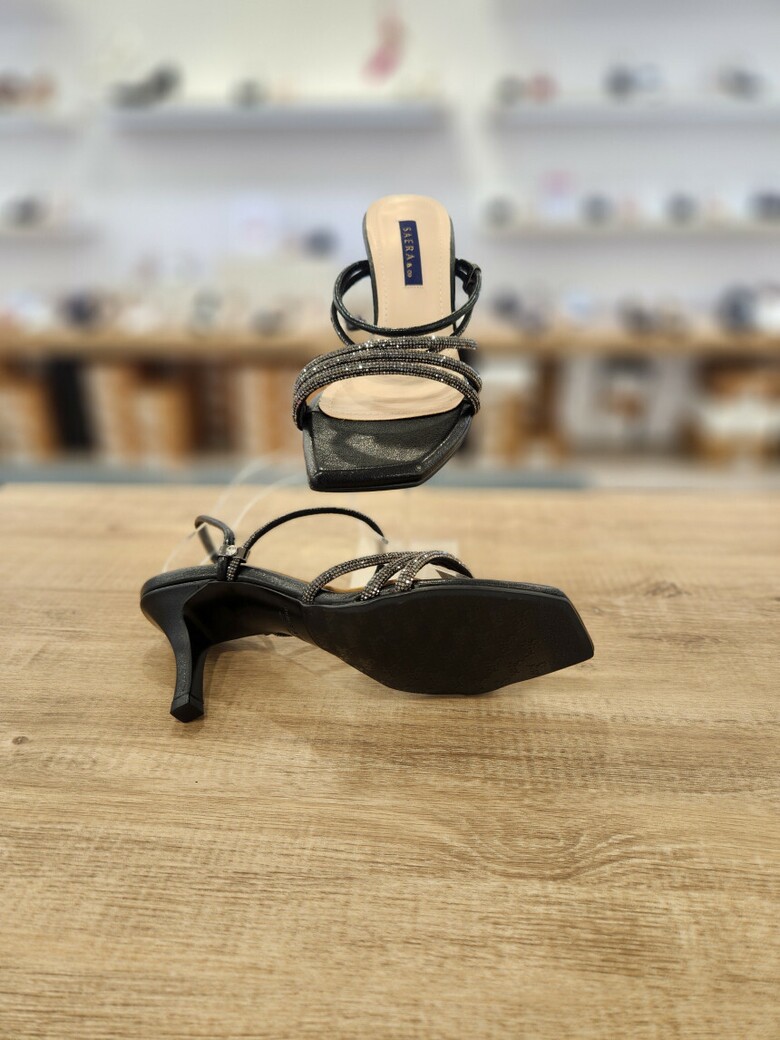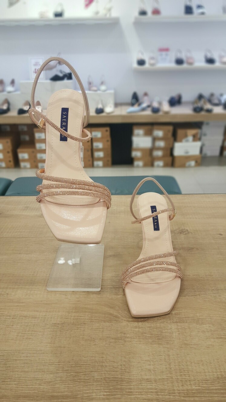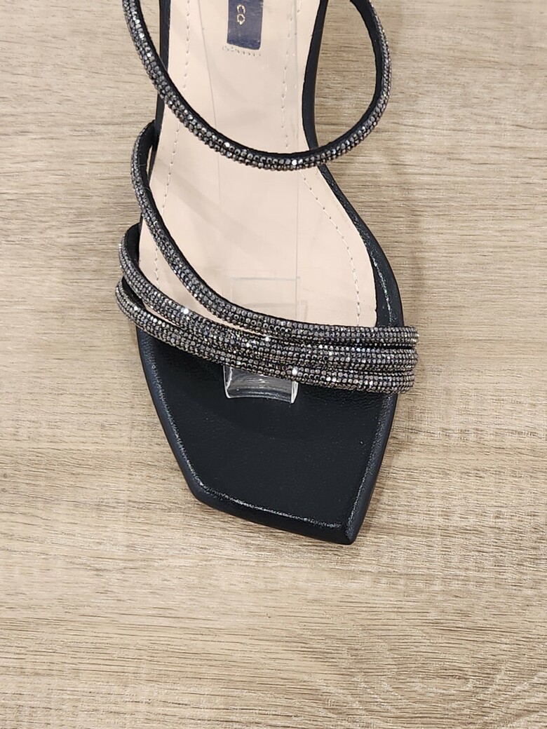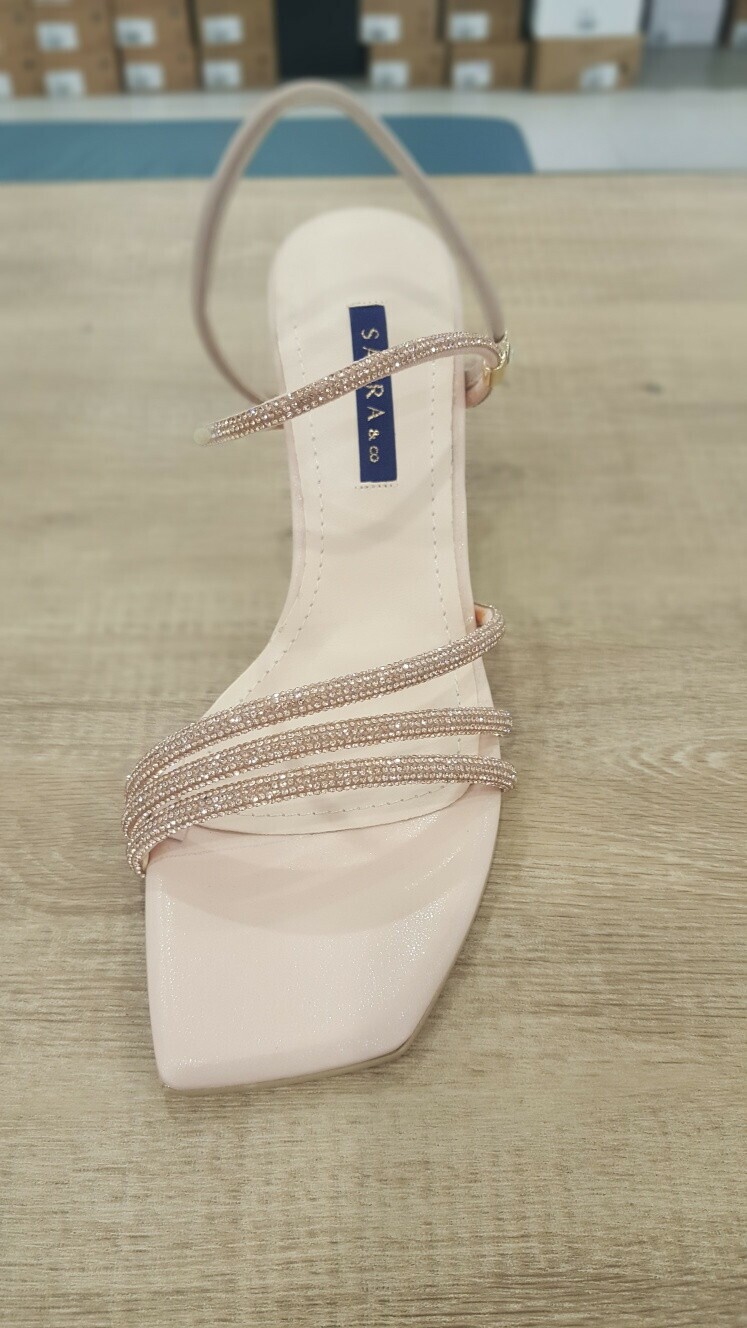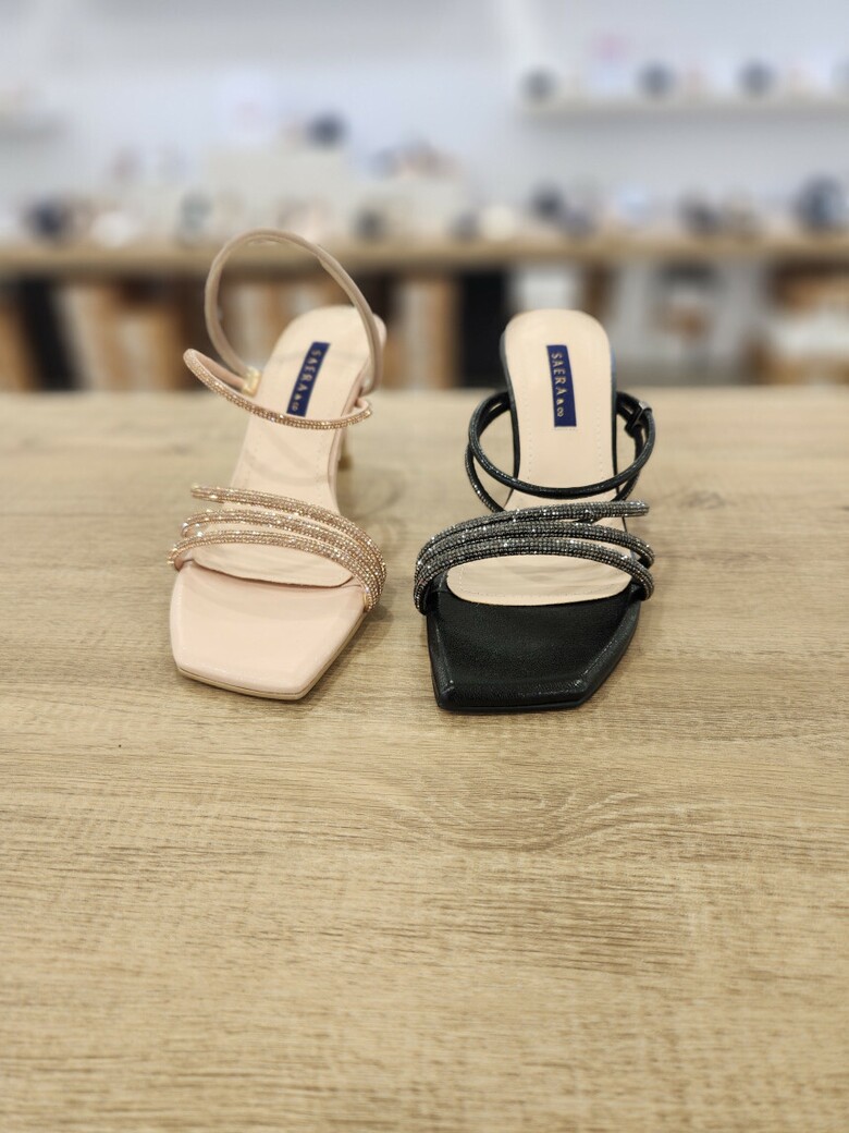 [세라] (2color) 굽 7cm 블링블링 양가죽 보석 스트랩 스퀘어토 여성 미들 슬리퍼 겸 샌들 a23s002