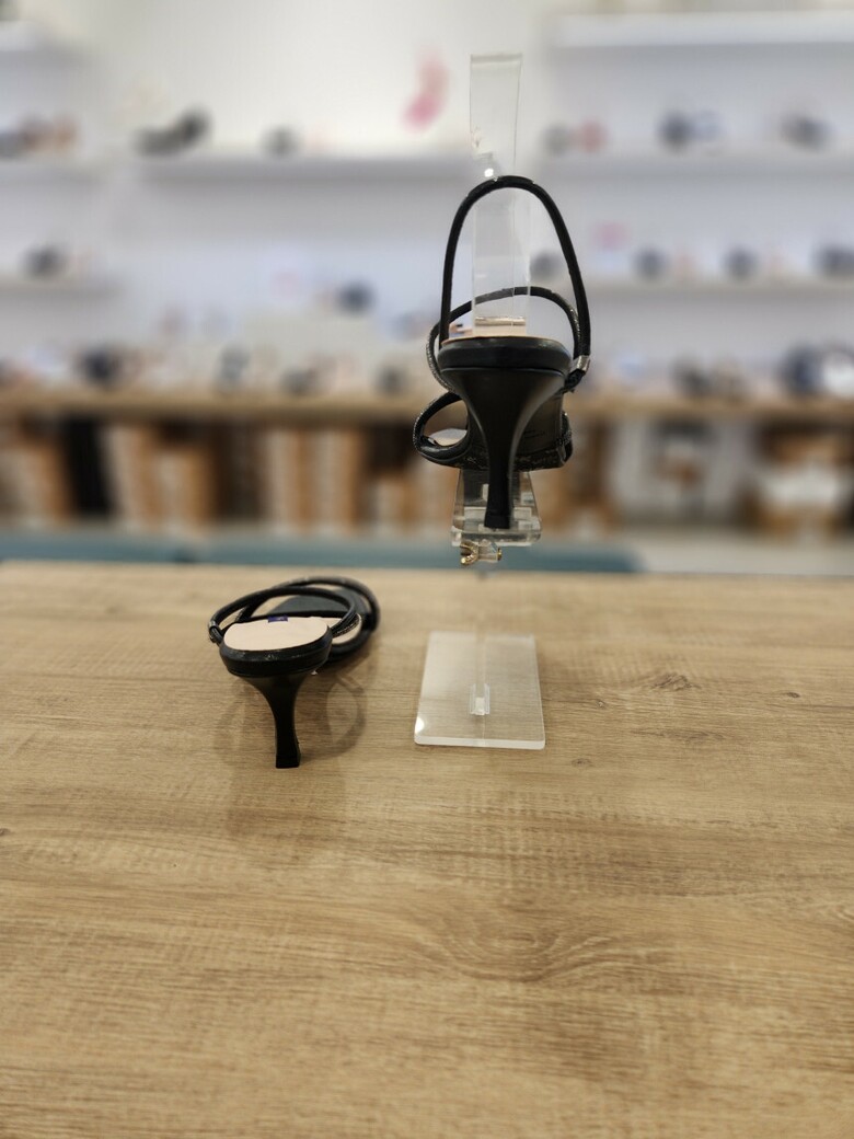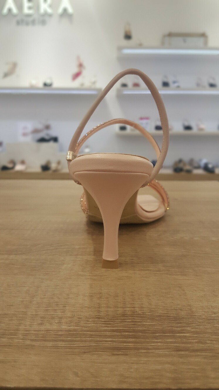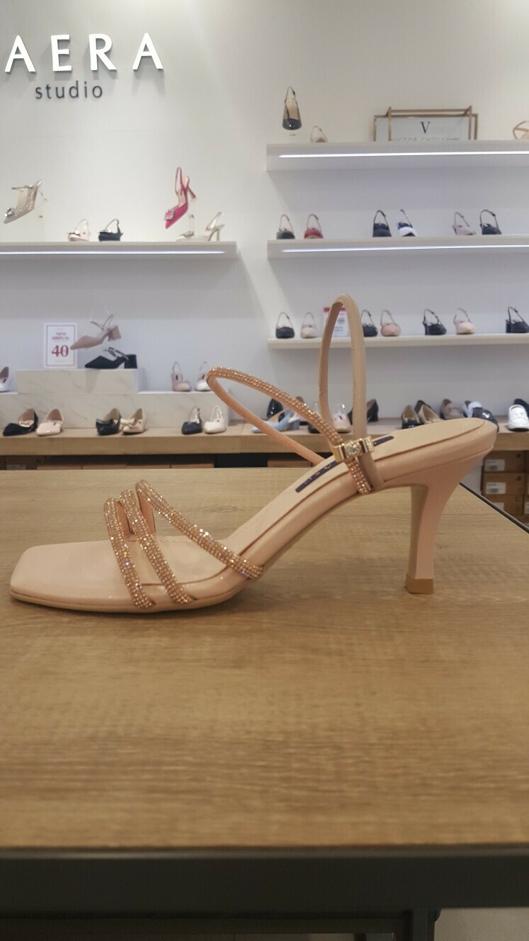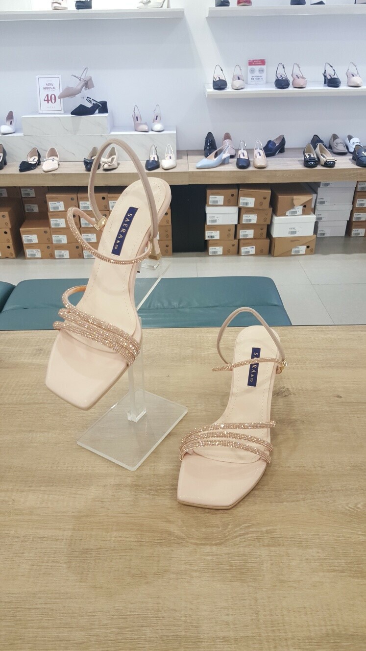 [세라] (2color) 굽 7cm 블링블링 양가죽 보석 스트랩 스퀘어토 여성 미들 슬리퍼 겸 샌들 a23s002