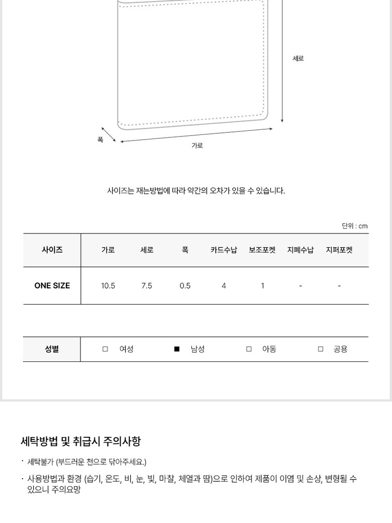 3. 치수 가로 10.5 cm X 세로 7.5 cm X 폭 0.5 cm