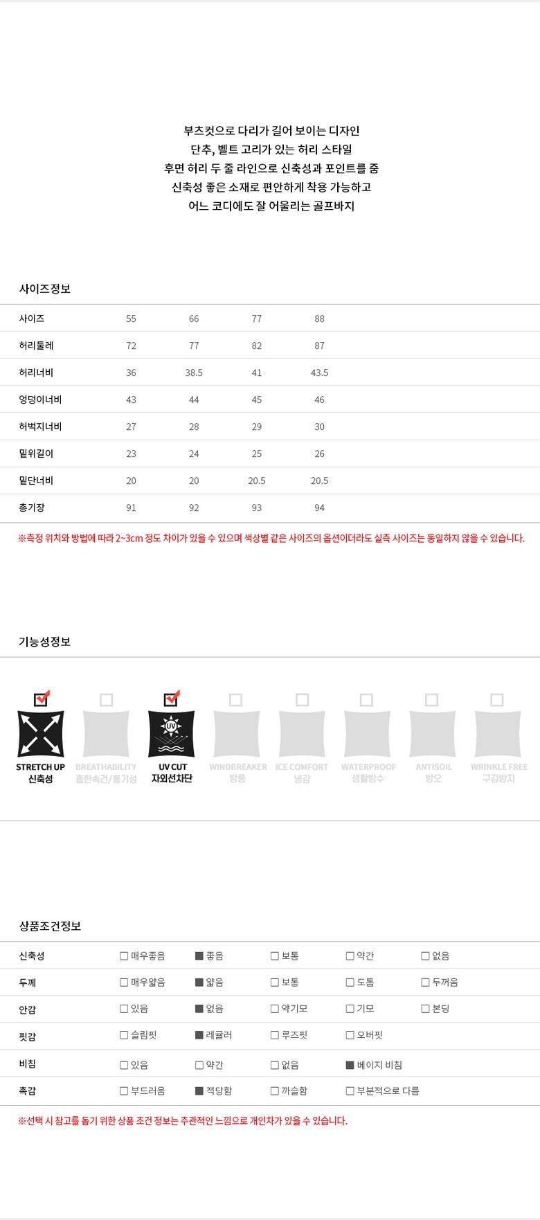 보스케 여성 여름 골프웨어 텐션 데일리 부츠컷 골프바지 L2588