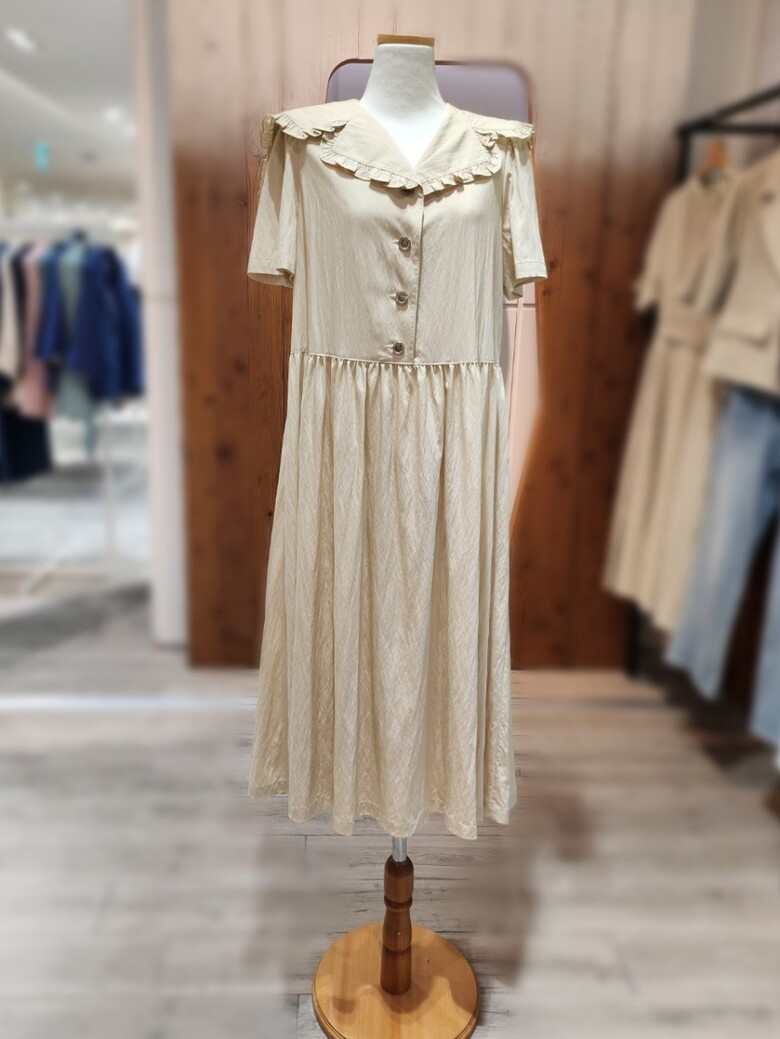 소시원한 레이온과 나일론 혼방 소재의 싱글버튼 원피스입니다.