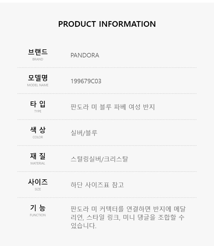 판도라 PANDORA 199679C03 미 파베 여성 반지