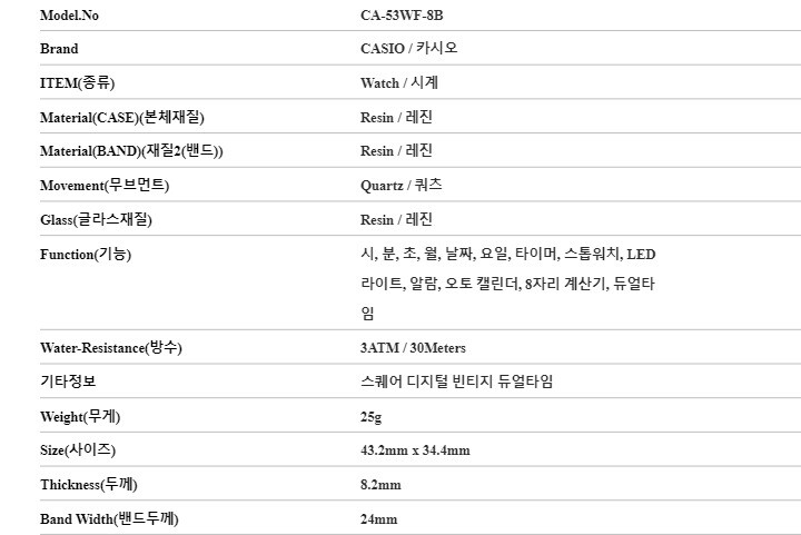 1. 소재 / 순도 / 밴드재질 | 블랙/ 케이스 - 레진 / 밴드 - 레진 |