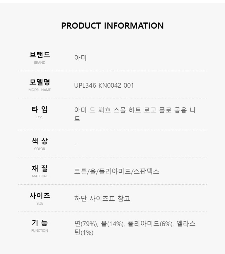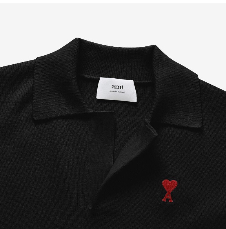 아미 AMI UPL346 KN0042 001 아미 드 꾀흐 스몰 하트 로고 폴로 공용 니트