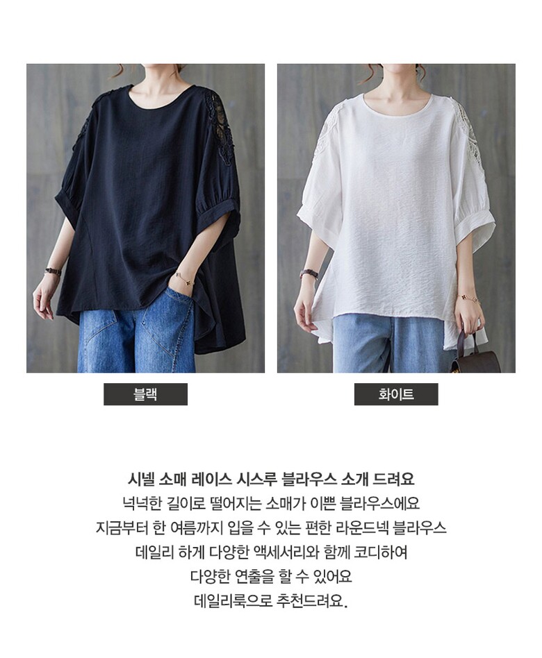 [~88까지]시넬 소매 레이스 시스루 블라우스