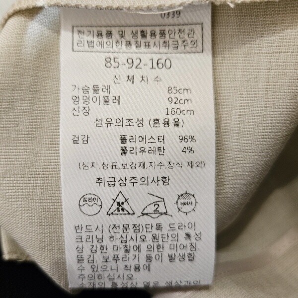 제품소재 : 겉감 - 폴리에스터96%, 폴리우레탄4%