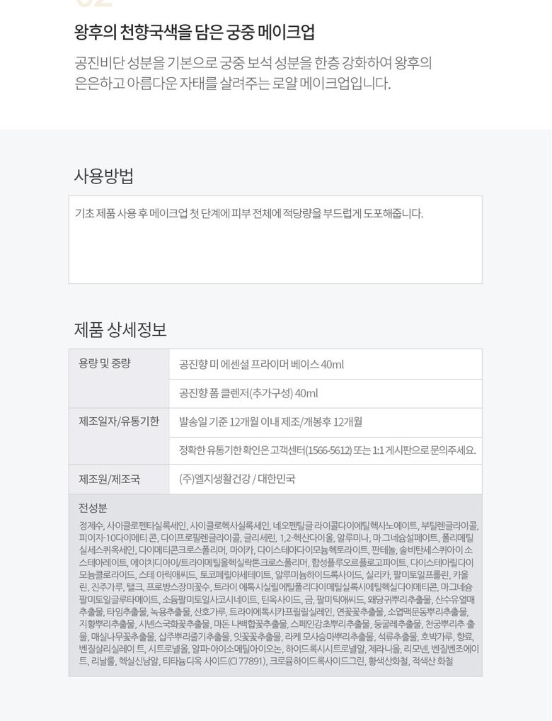 | 4. 사용방법 | 기초 제품 사용 후 메이크업 첫 단계에 피부 전체에 적당량을 부드럽게 도포해줍니다. |