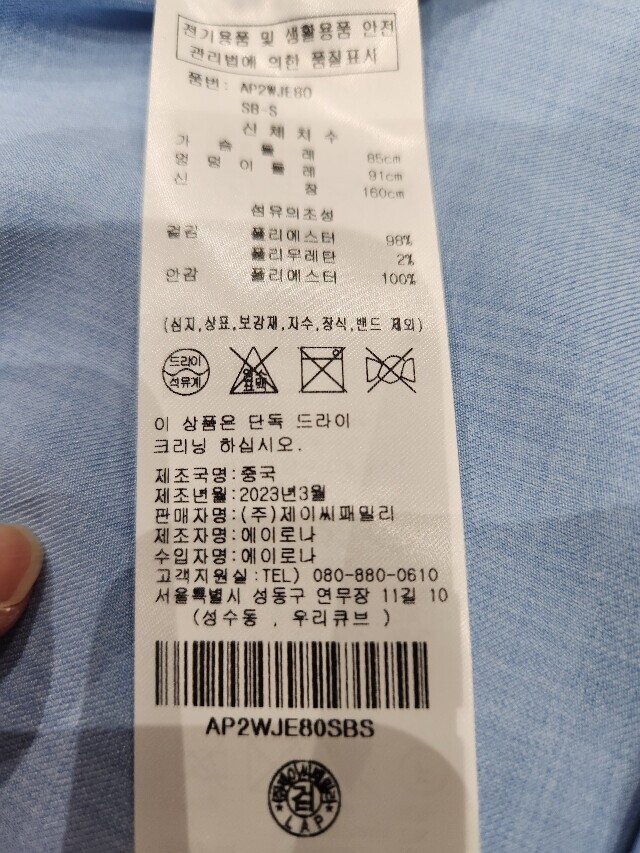 | 6. 세탁방법 및 취급시 주의사항 | 상품상세참조 |
