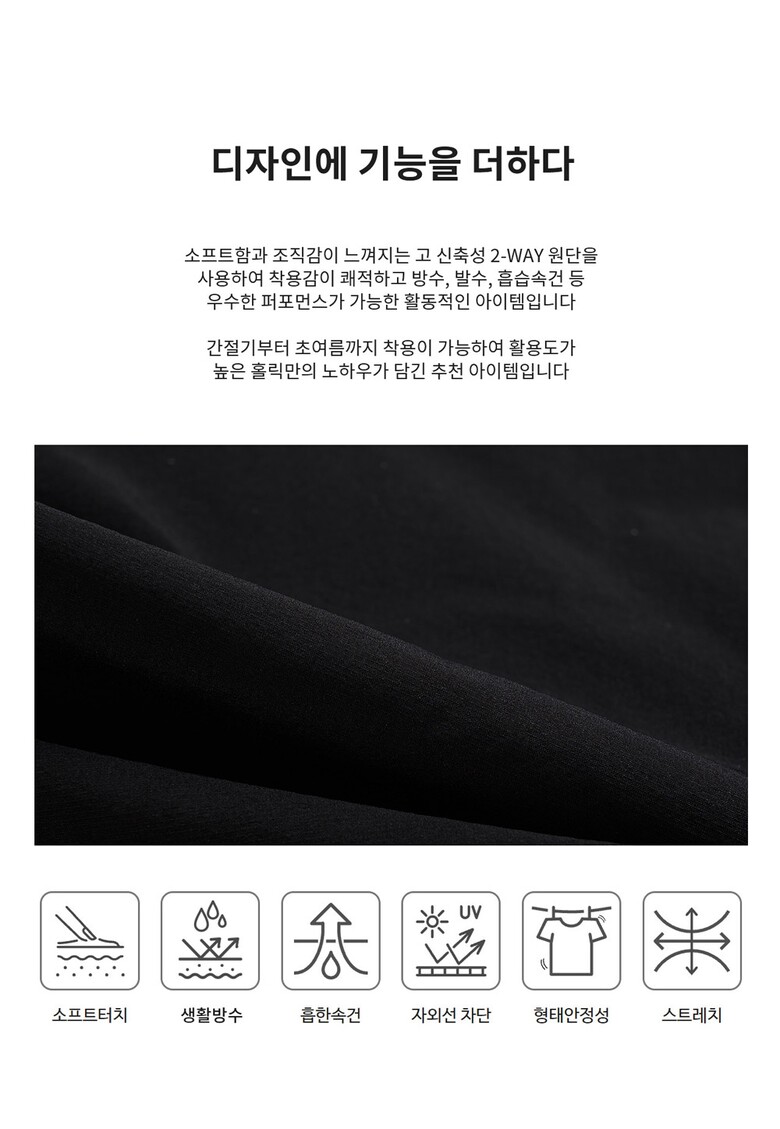 | 1. 제품 소재 (섬유의 조성 또는 혼용률을 백분율로 표시, 기능성인 경우 성적서 또는 허가서) | 겉감 : 나일론 92% , 폴리우레탄 8% / 배색 : 나일론 92% , 폴리우레탄 8% |
