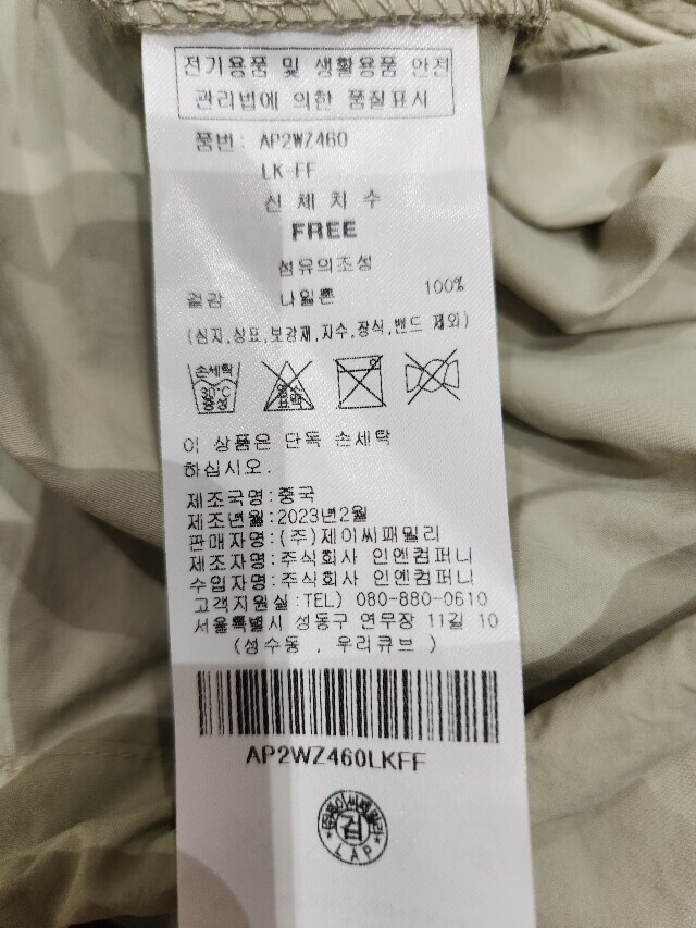 | 6. 세탁방법 및 취급시 주의사항 | 상품상세참조 |