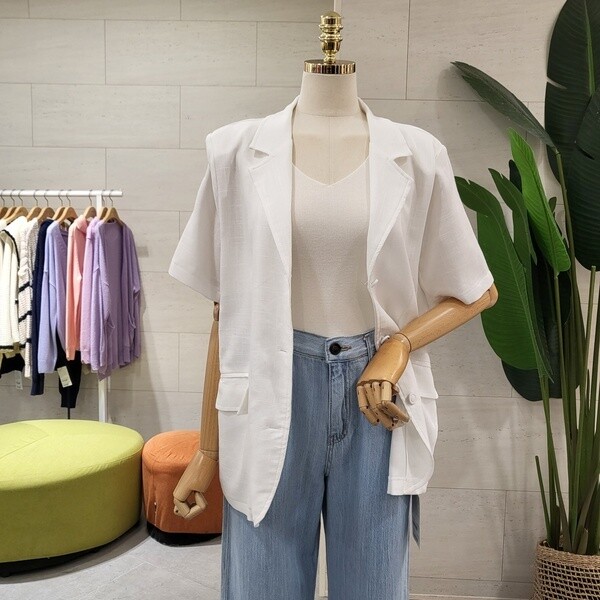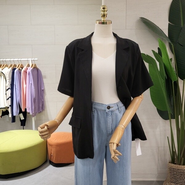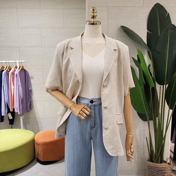 C24F7FJK011_베이직 린넨혼방 반팔자켓