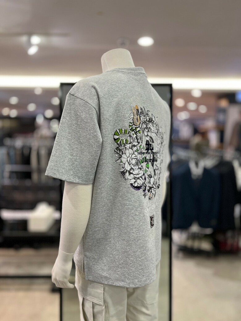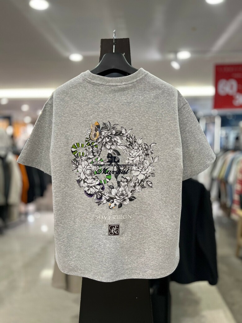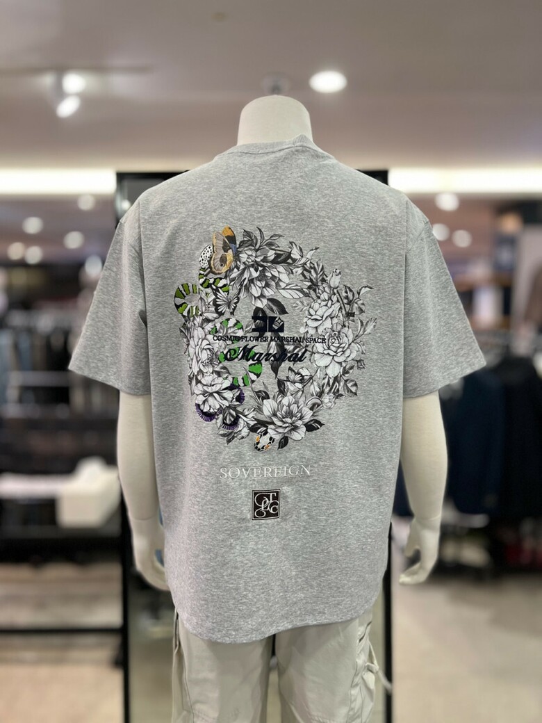 리버클래시 멜란지그레이 등판 플라워 아트윅 프린팅 오버핏 반팔티셔츠 LKS42313