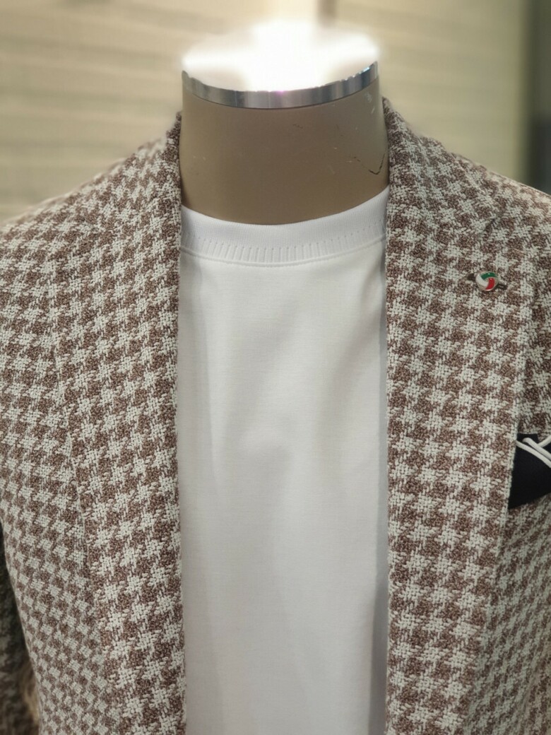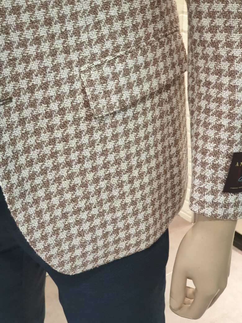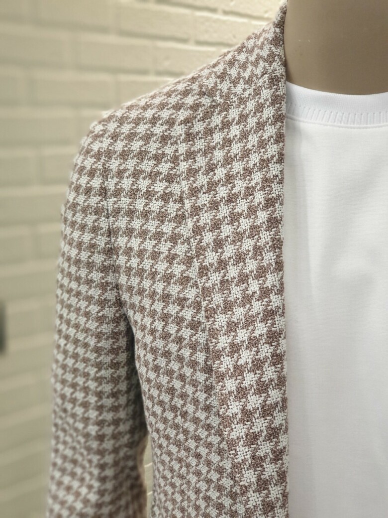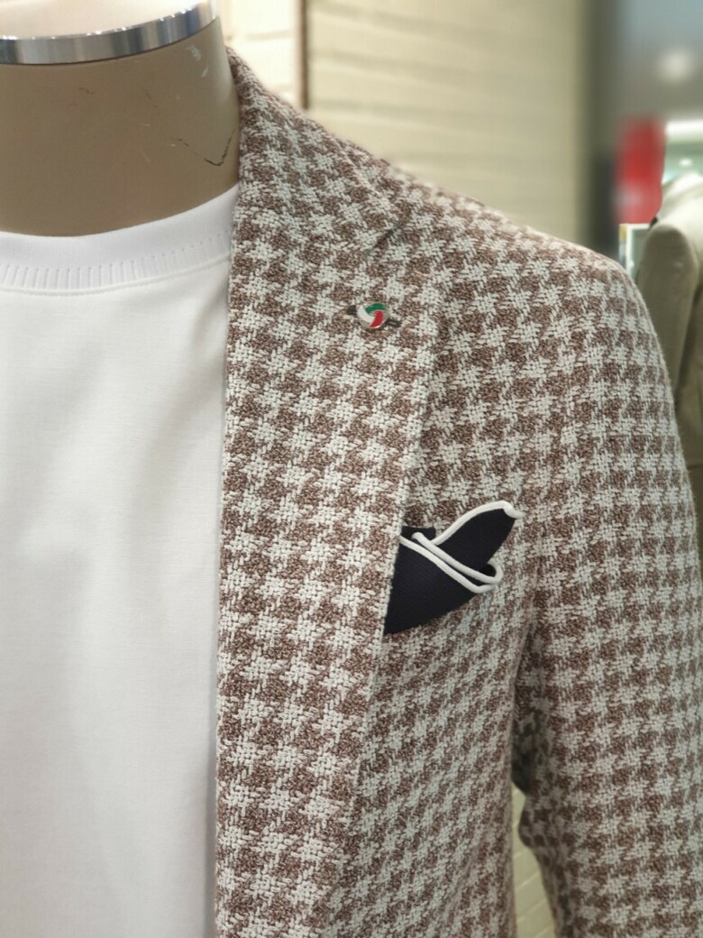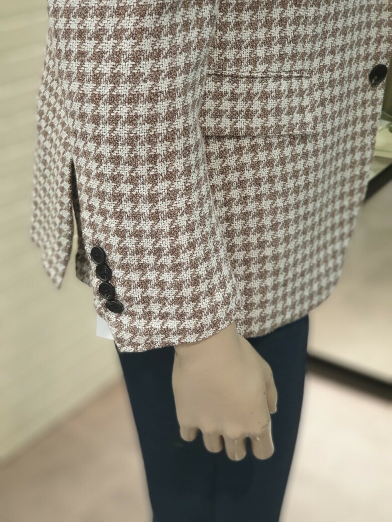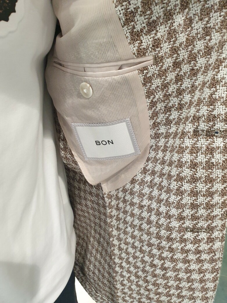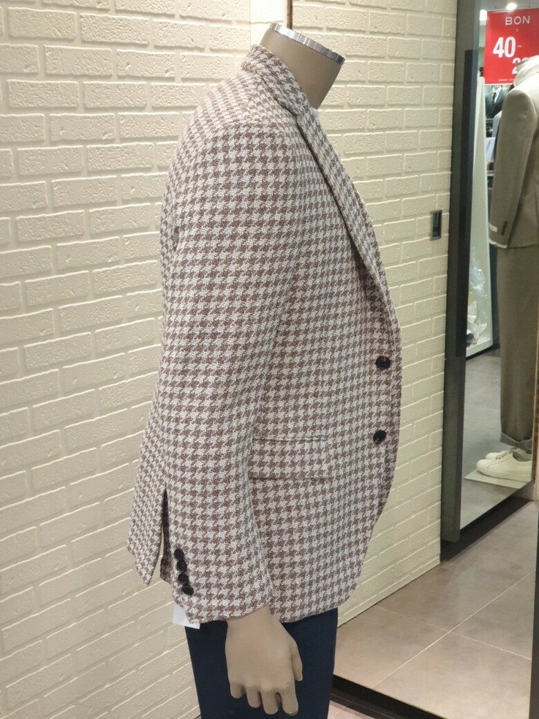 BON 24SS 브라운 이태리 고급 린넨 하운드 투스 캐주얼 스트레치 슬림 자켓BN4SEA223BR