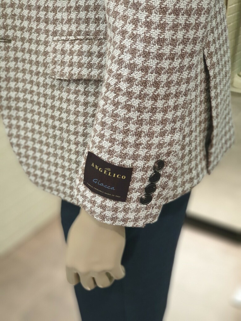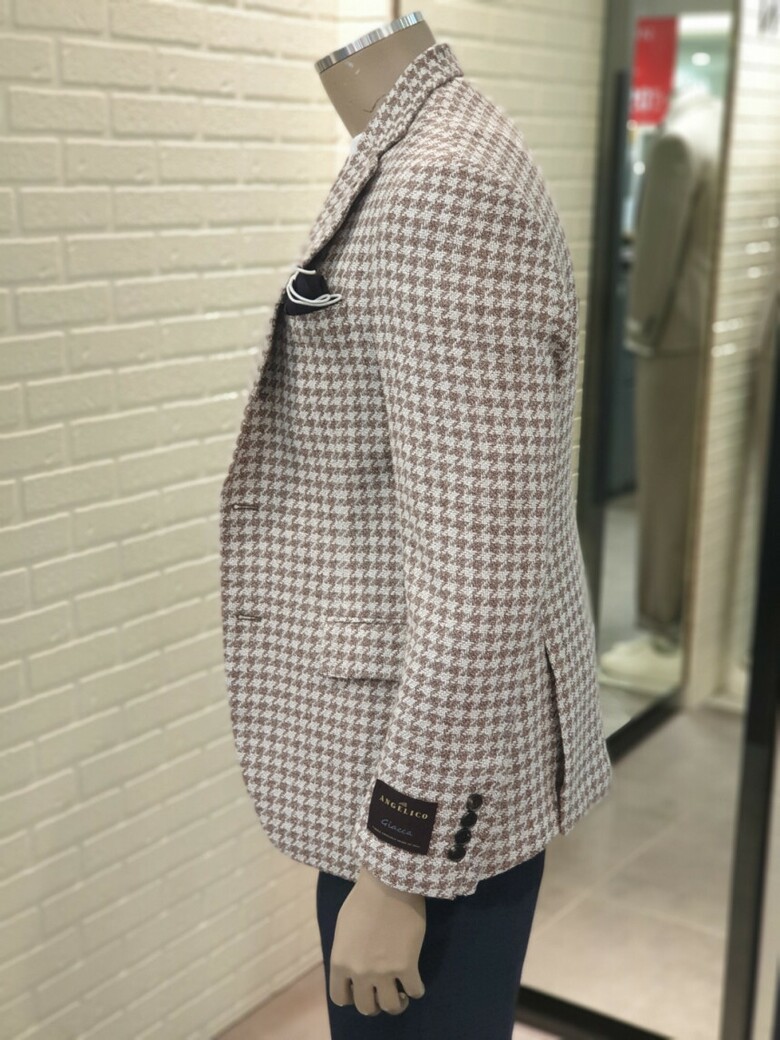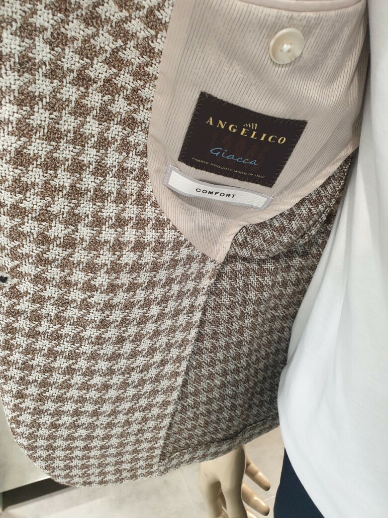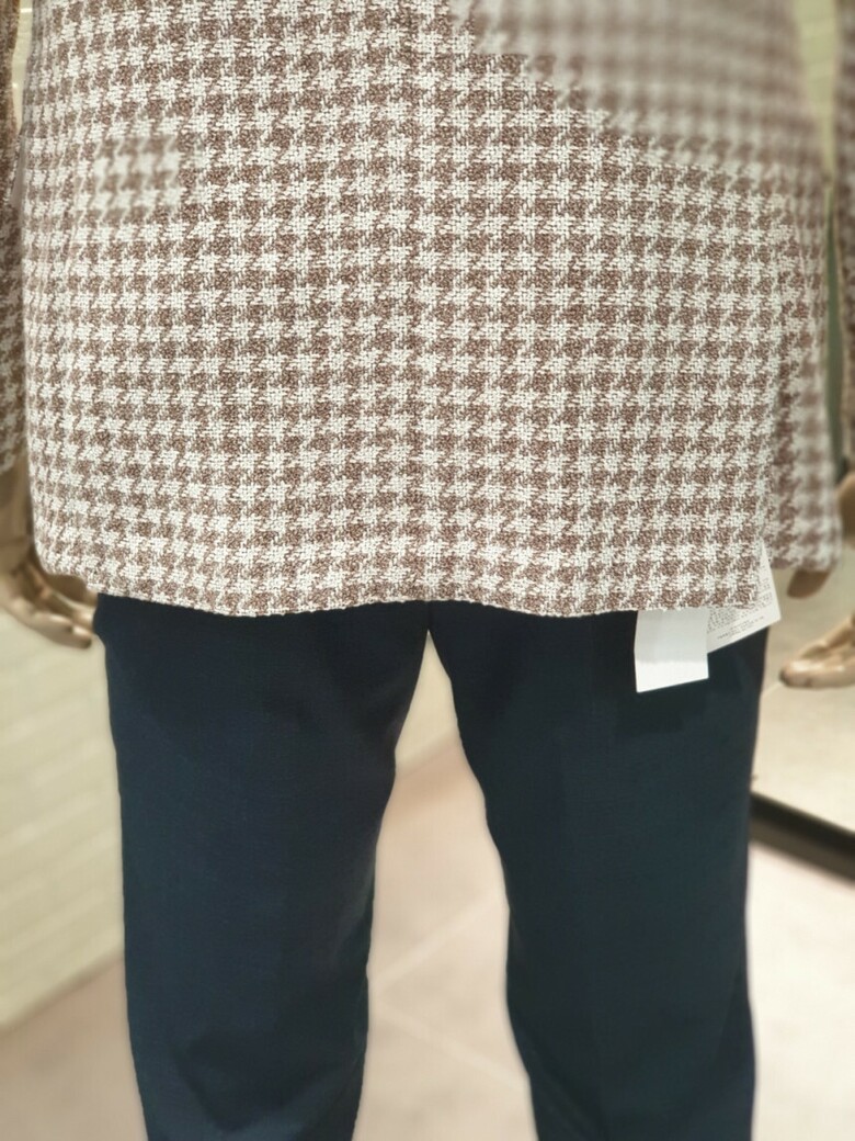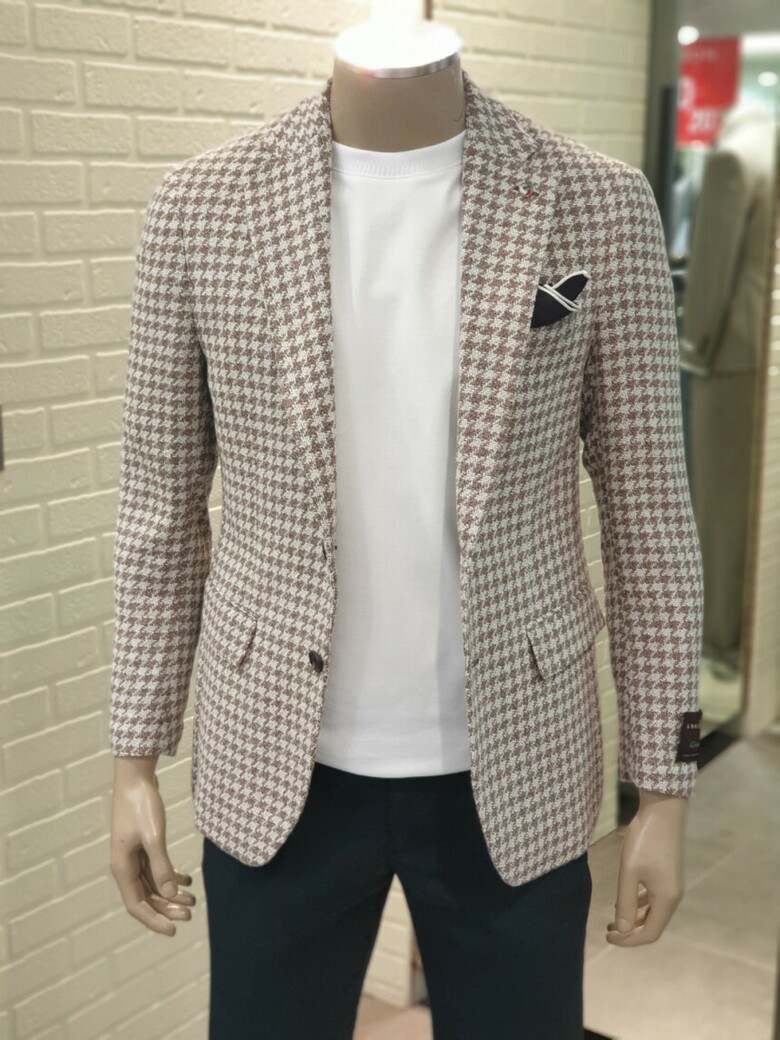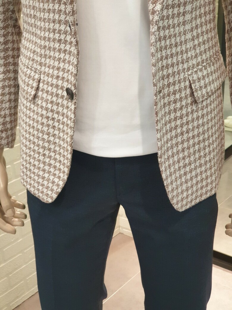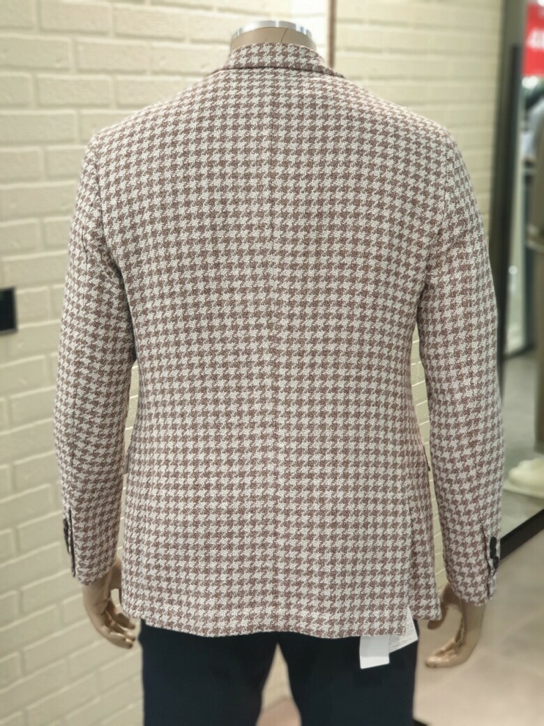 BON 24SS 브라운 이태리 고급 린넨 하운드 투스 캐주얼 스트레치 슬림 자켓BN4SEA223BR