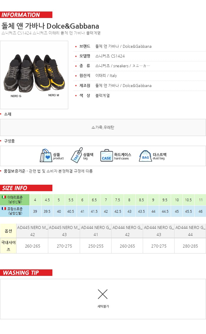 | 1. 제품 소재 (운동화인 경우에는 겉감, 안감을 구분하여 표시) | 상세페이지 참조 |