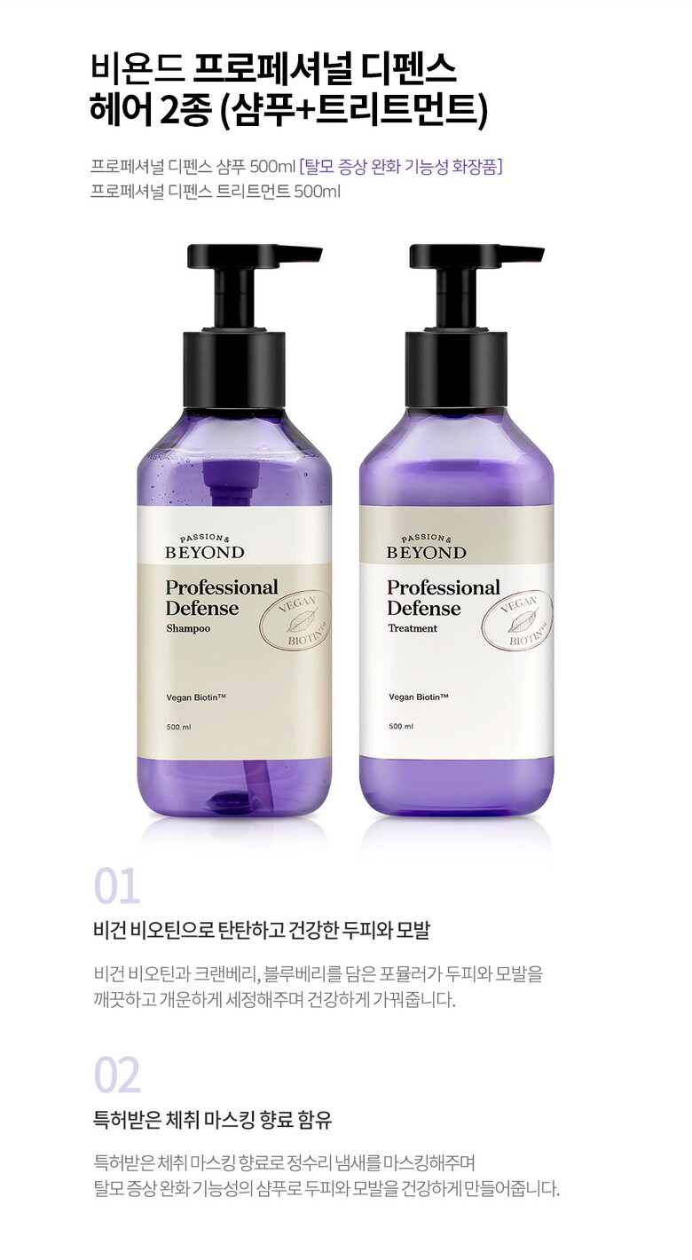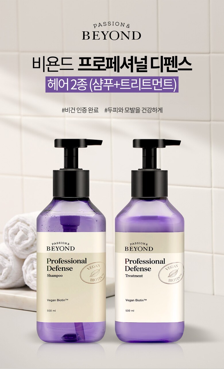 비욘드 프로페셔널 디펜스 헤어 2종 (샴푸+트리트먼트) 비건 탈모케어