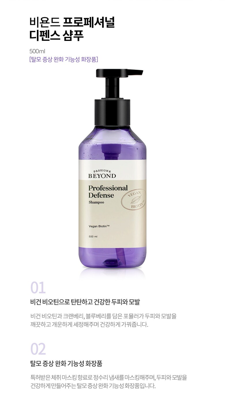 비욘드 프로페셔널 디펜스 샴푸 500ml 비건 탈모케어