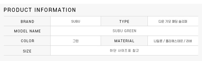 스부 슬리퍼 SUBU GREEN SB-16 다운 기모 패딩 슬리퍼 당일발송