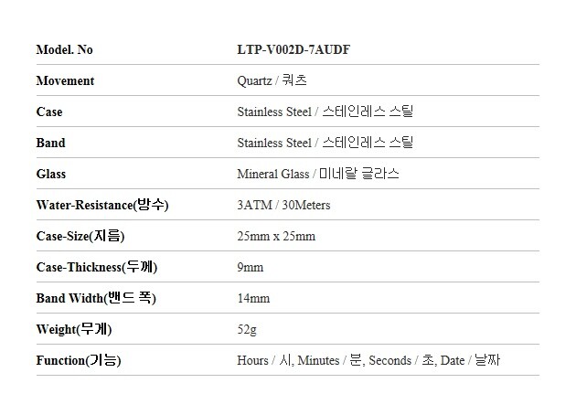 | 7-2. 시계 - 기능, 방수 등 | 상세정보참조 |