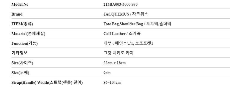 자크뮈스 숄더백 213BA003-3000 990 르 그랑 치키토 라지 블랙 여성숄더백 당일발송