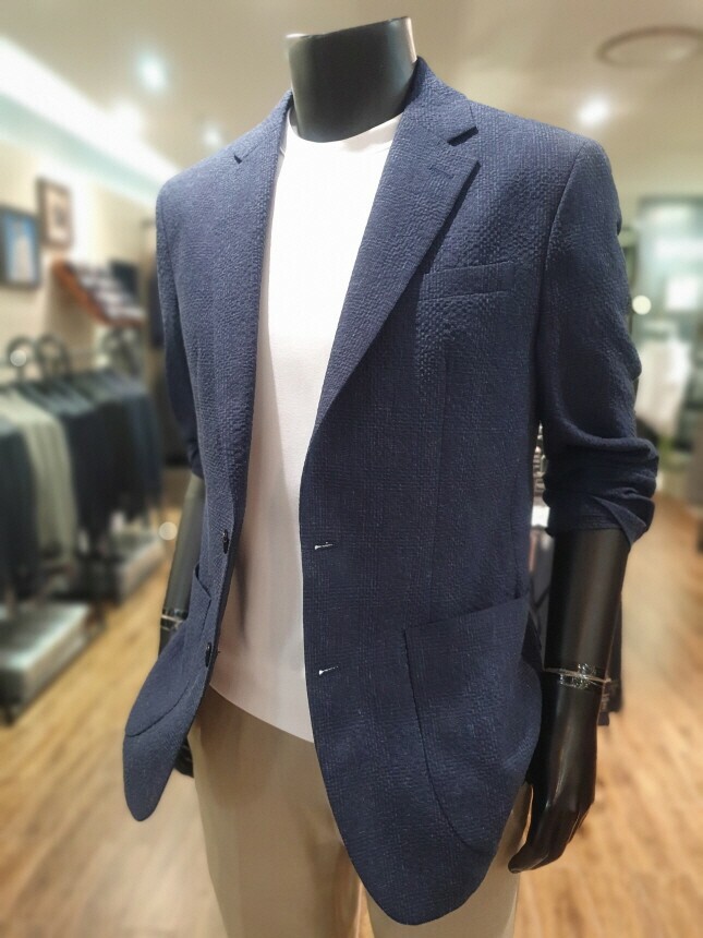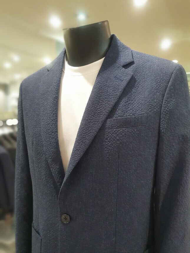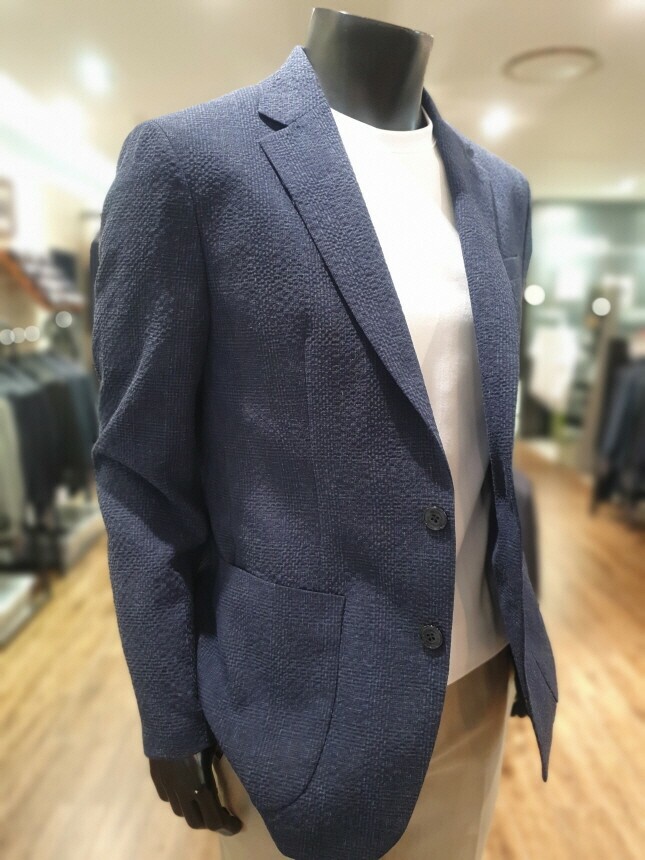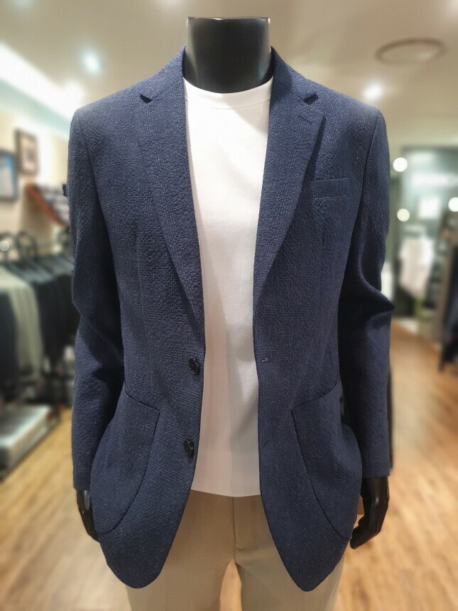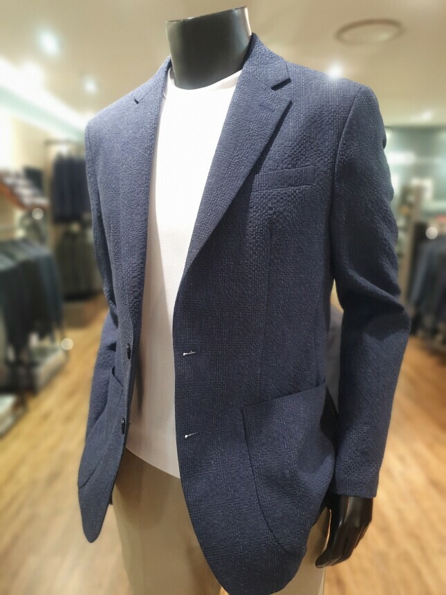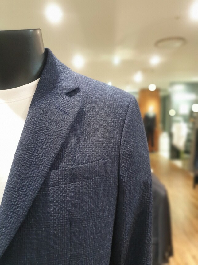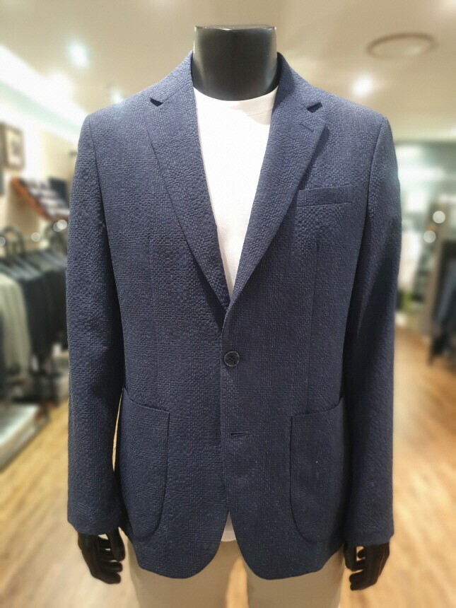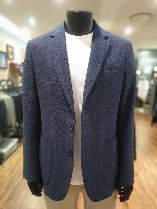 [바쏘옴므] WSY2-J S 56-ABU 24년 S/S 블루 시어서커 글렌체크 스트레치 캐쥬얼 재킷