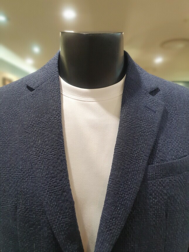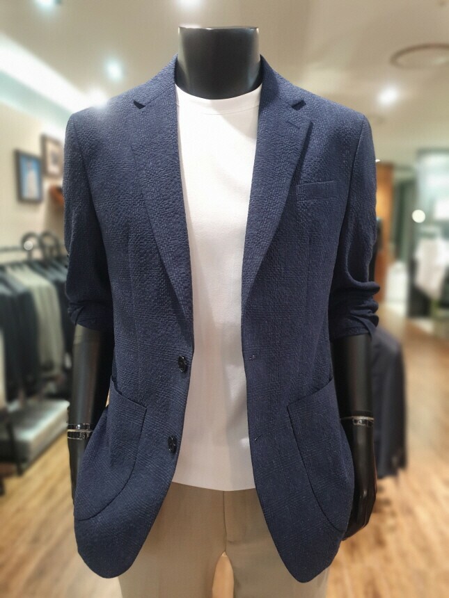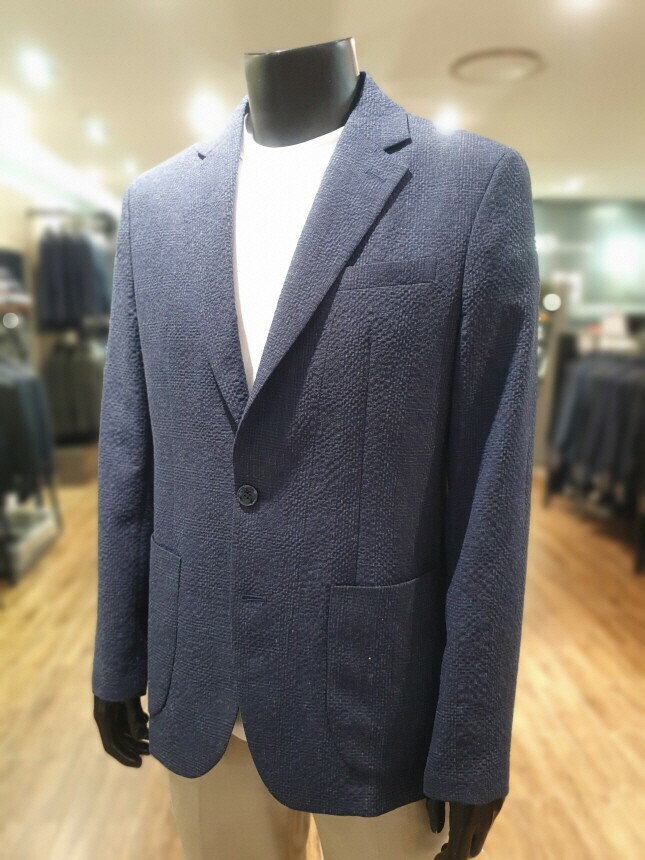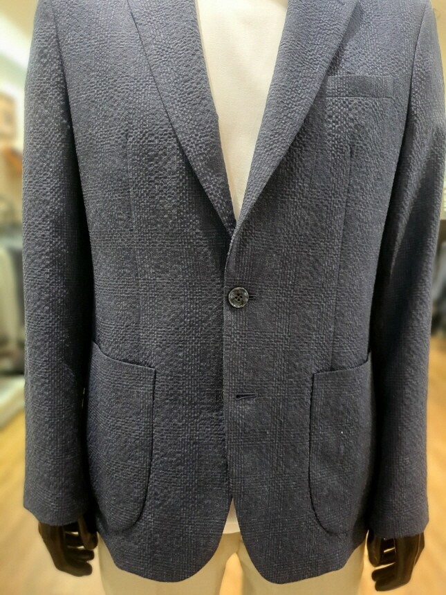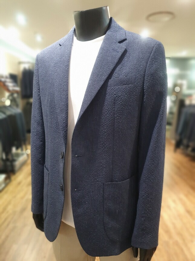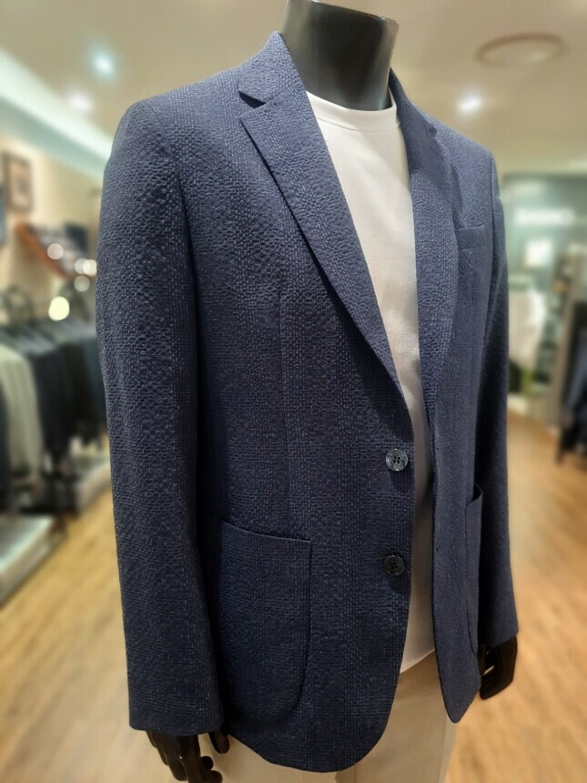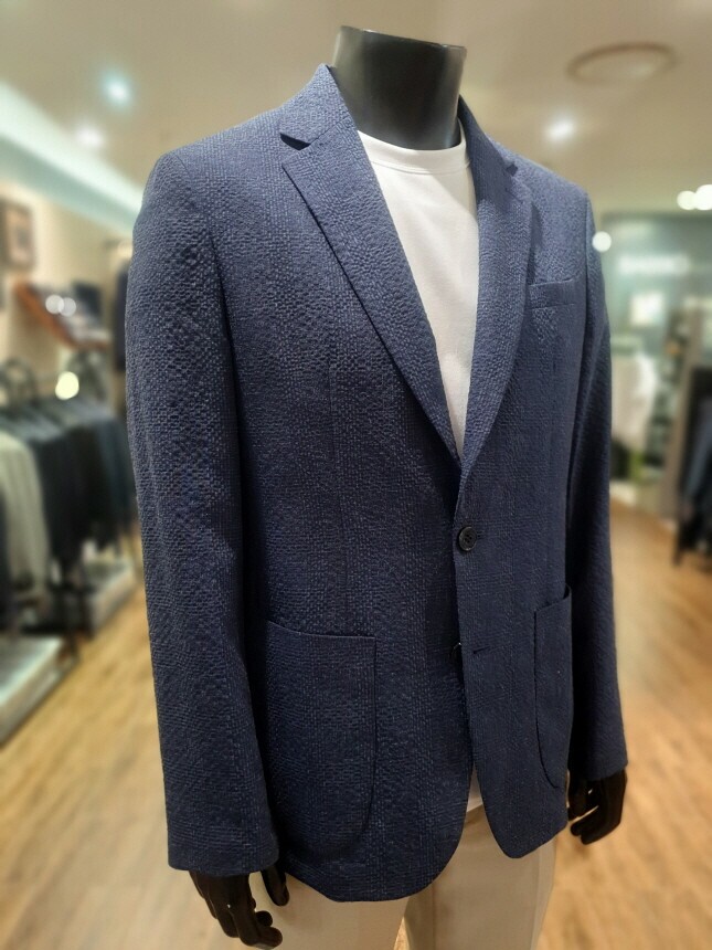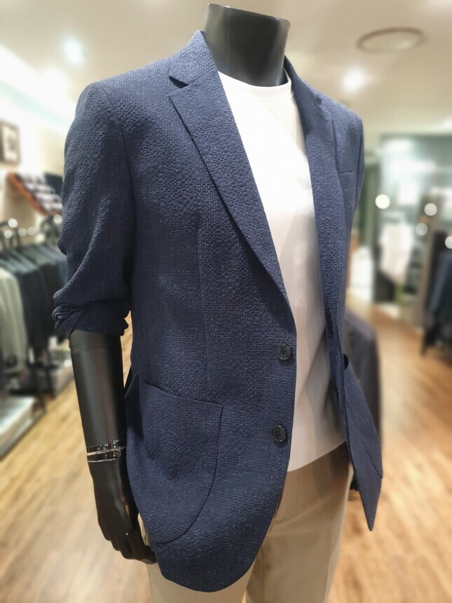 [바쏘옴므] WSY2-J S 56-ABU 24년 S/S 블루 시어서커 글렌체크 스트레치 캐쥬얼 재킷