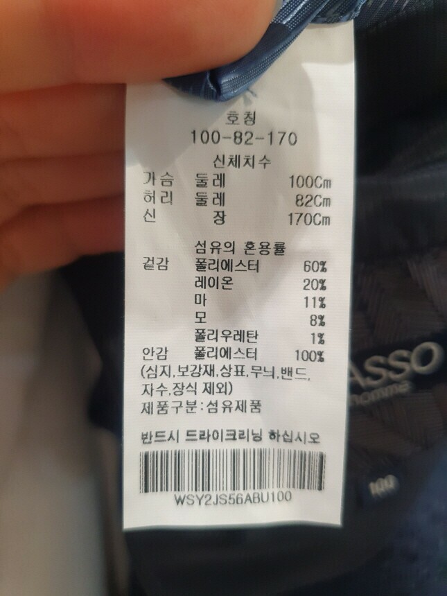 겉감 : 폴리에스터 60% , 레이온 20% , 마 11% , 모 8% , 폴리우레탄 1%