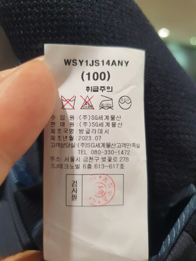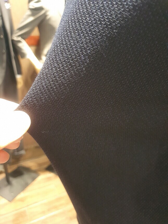| 1. 제품 소재 (섬유의 조성 또는 혼용률을 백분율로 표시, 기능성인 경우 성적서 또는 허가서) | 겉감 : 모 77% , 레이온 21% , 폴리우레탄 2% 안감 : 폴리에스터 100 |