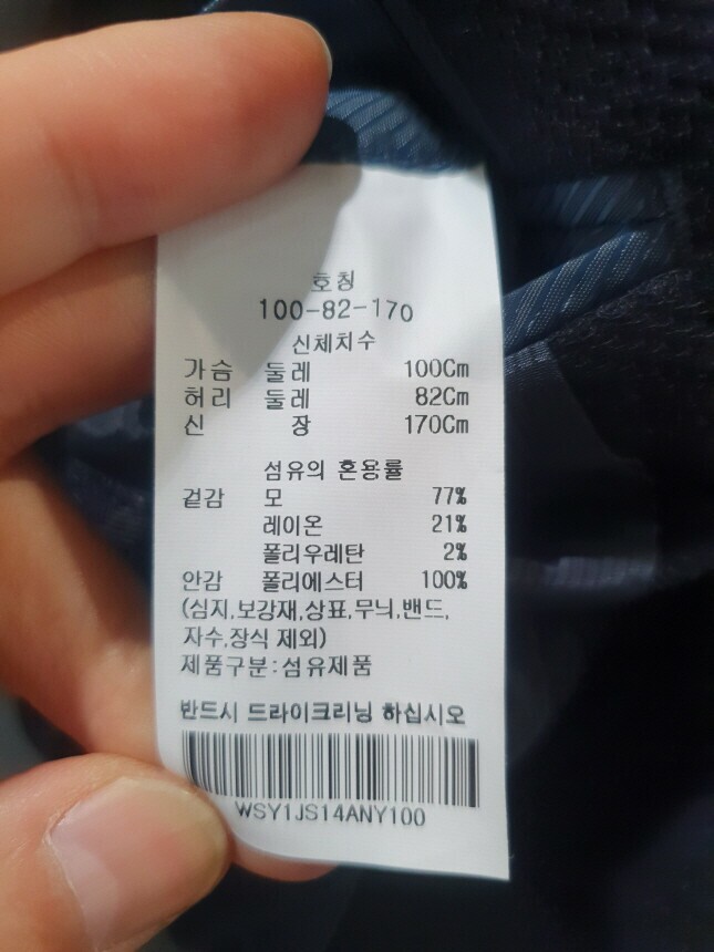 겉감 : 모 77% , 레이온 21% , 폴리우레탄 2%