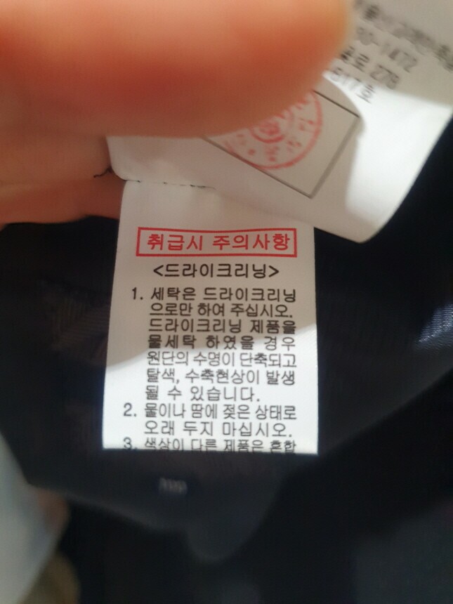 | 6. 세탁방법 및 취급시 주의사항 | 드라이크리닝 |