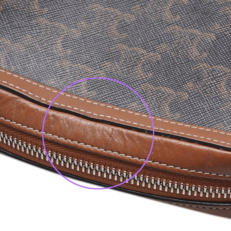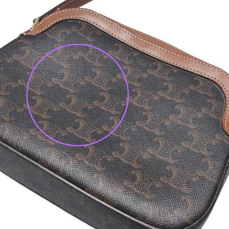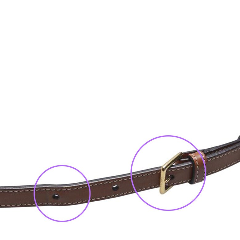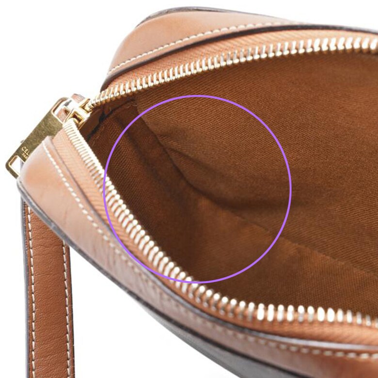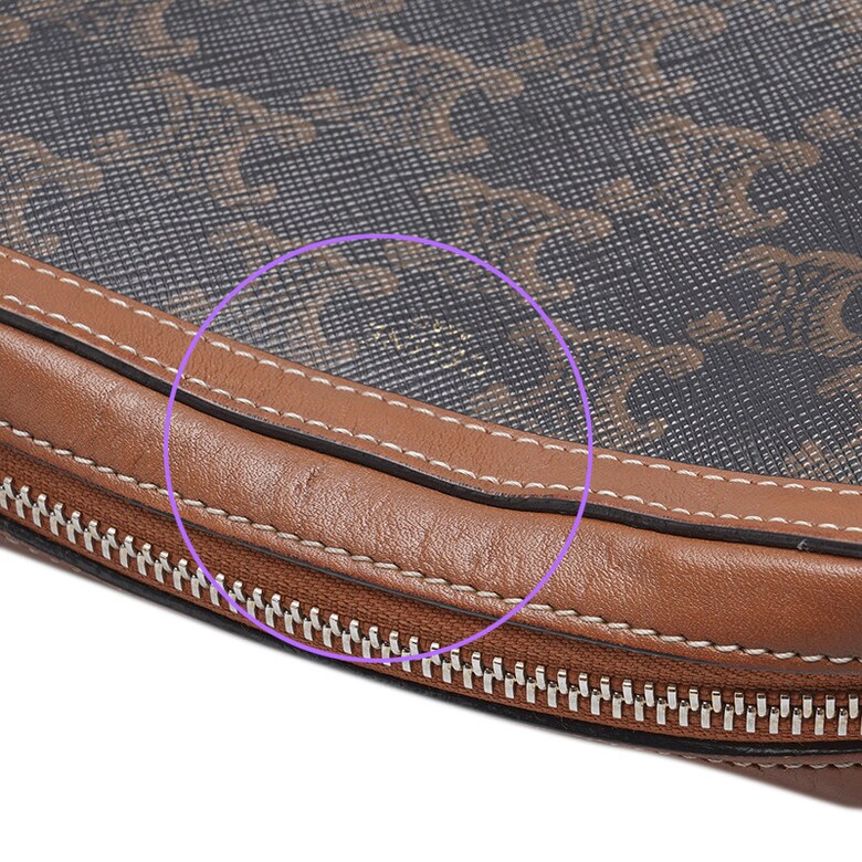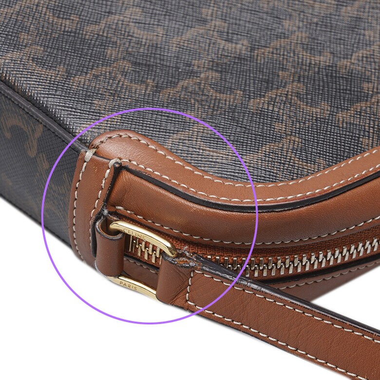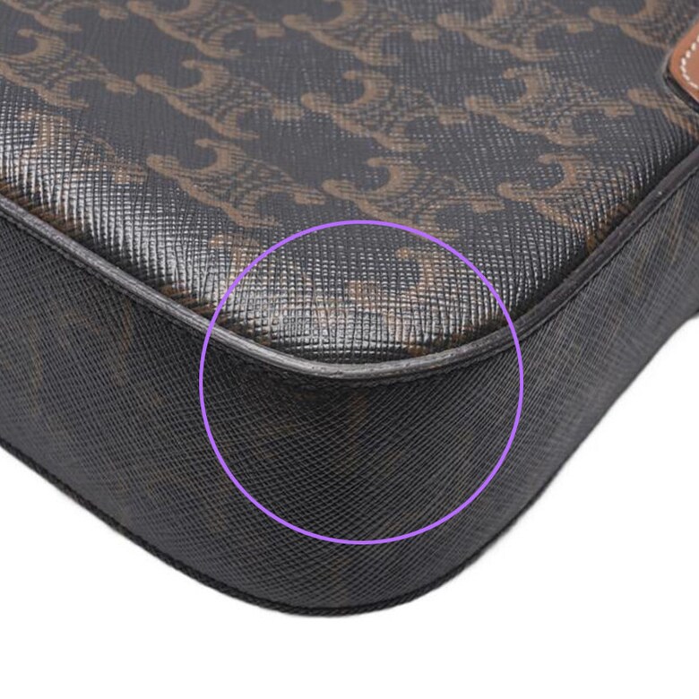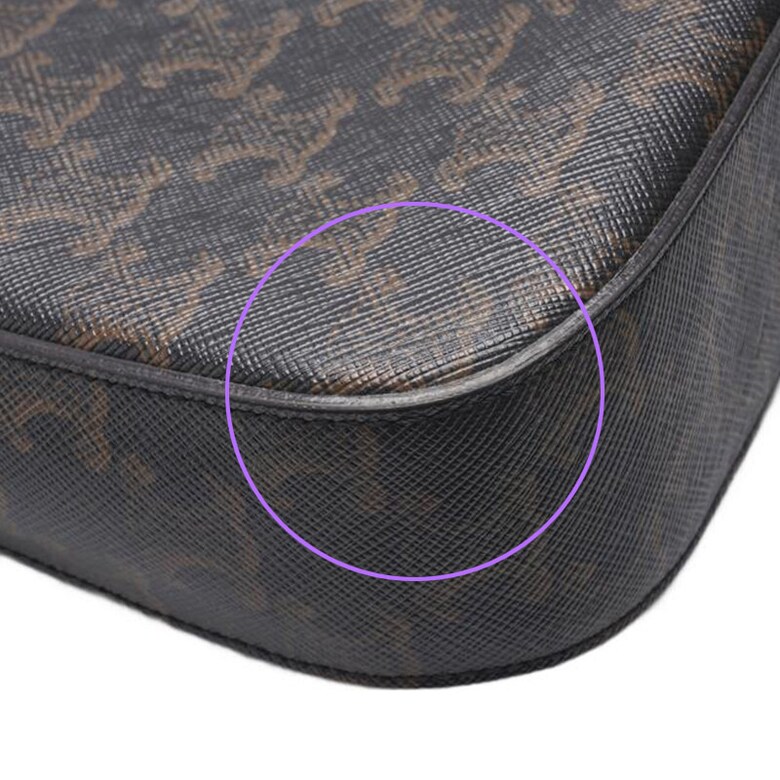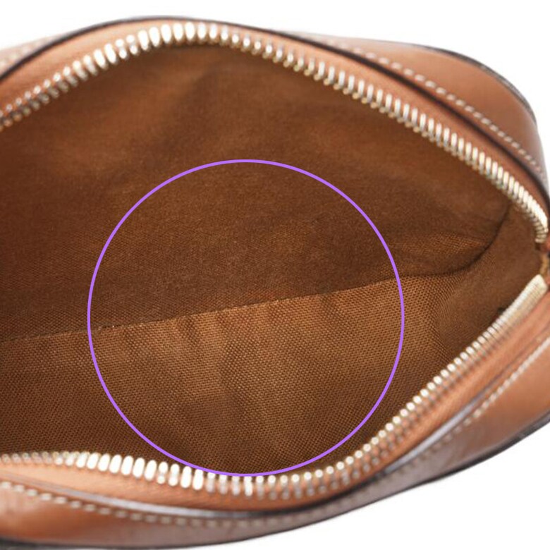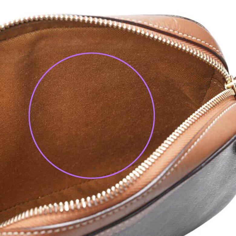 상태 : 정면 로고 프린팅 마모, 전체적으로 테두리와 모서리 마모, 상단 가죽 때탐과 마모 및 이염과 찍힘 자국, 상단 양 사이드 가죽 벌어짐, 숄더스트랩 때탐과 주름 및 금속 마찰로 인한 이염, 스트랩 연결부 유약 갈라짐과 벗겨짐, 금속 스크래치 및 칠 까짐, 내부 때탐 및 얼룩