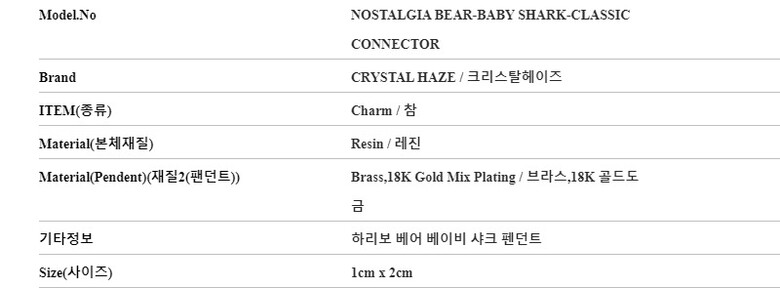 크리스탈헤이즈 노스텔지아 하리보 베어 베이비 샤크 펜던트 여성참 당일발송