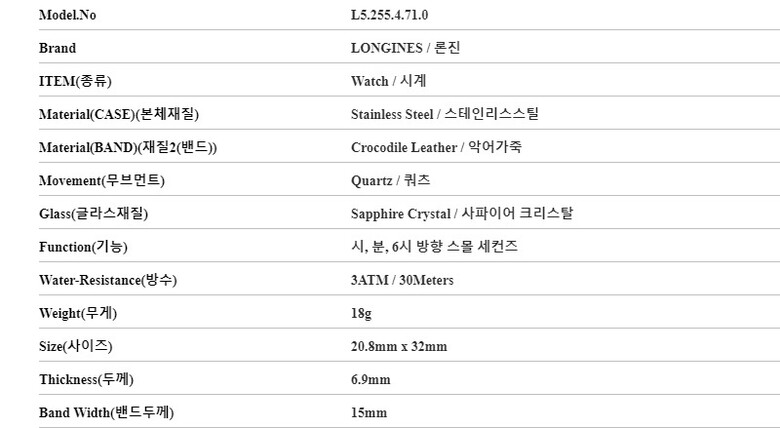 | 1. 소재 / 순도 / 밴드재질 | 실버/ 케이스 - 스테인리스스틸 / 밴드 - 악어가죽 |