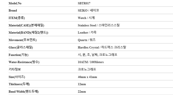 세이코 시계 SBTR017 스피릿 크로노그래프 타키미터 가죽시계 남성시계 남자시계 당일발송