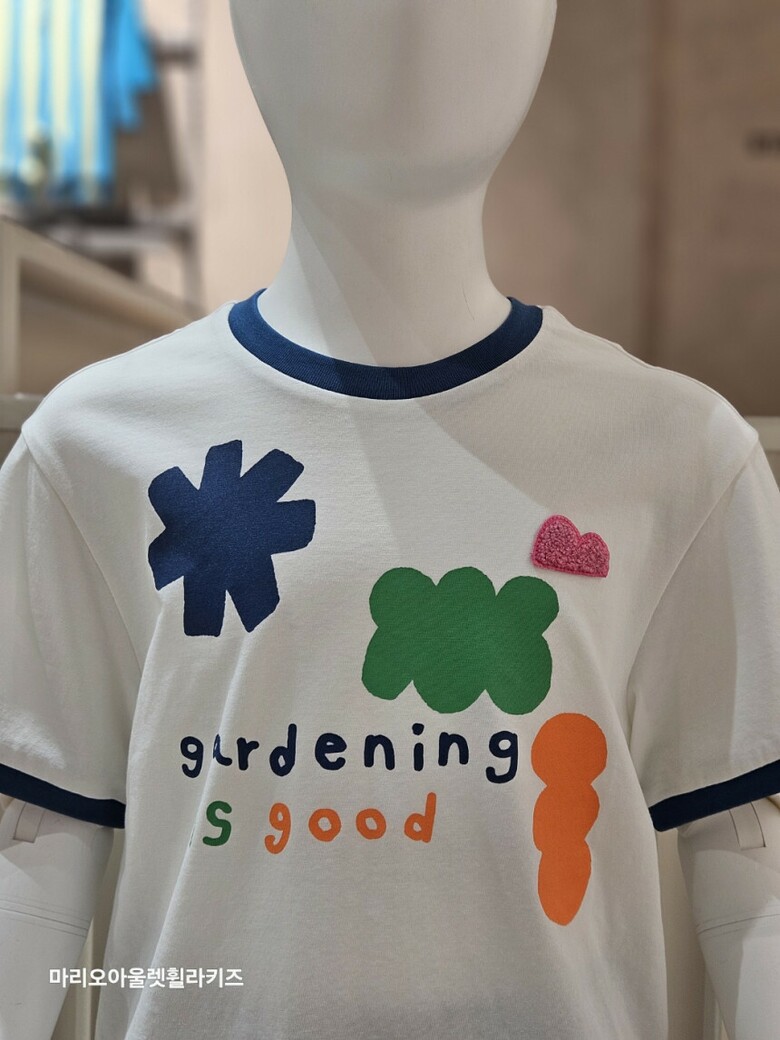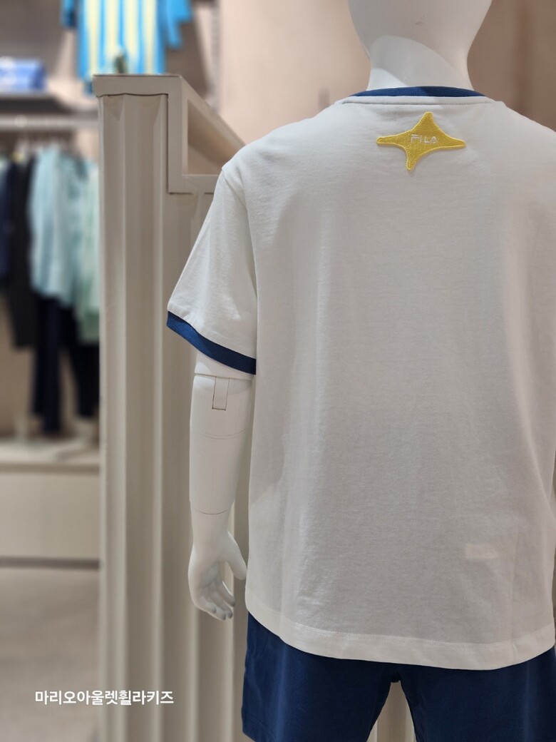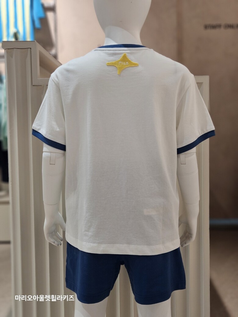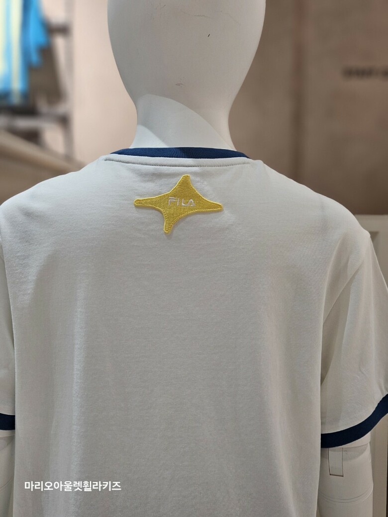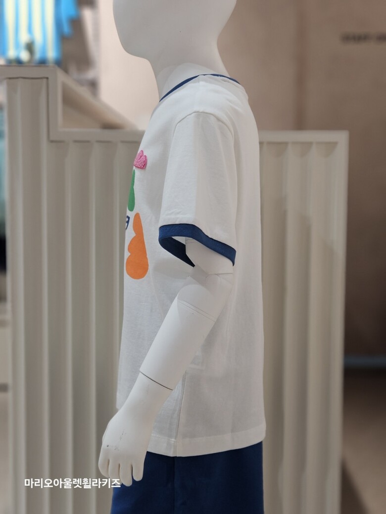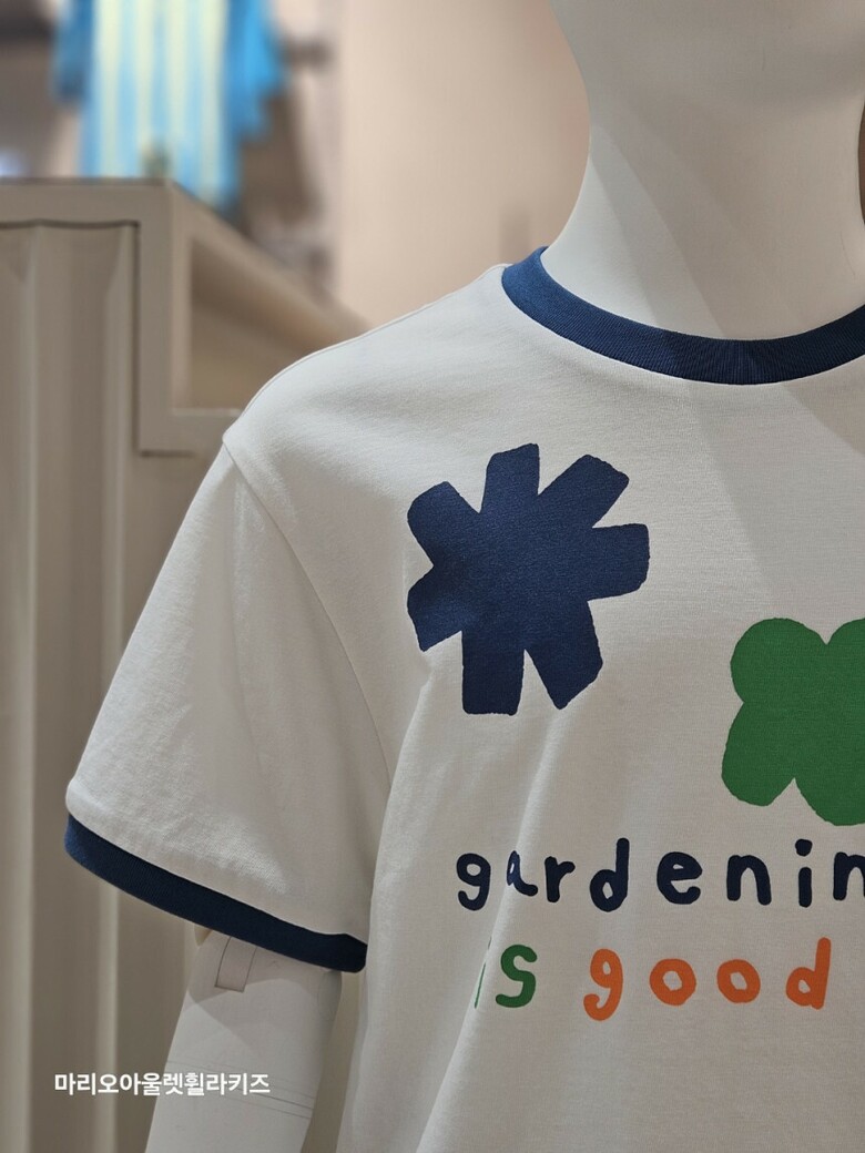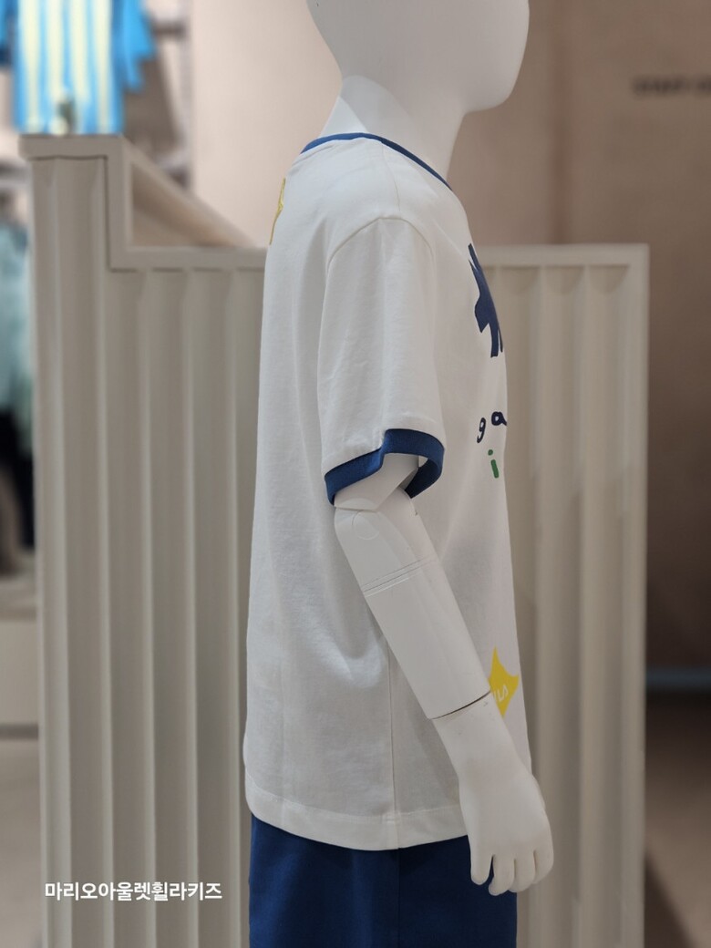 - 넥부분과 소매 끝 블루 컬러 팁이 포인트