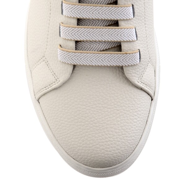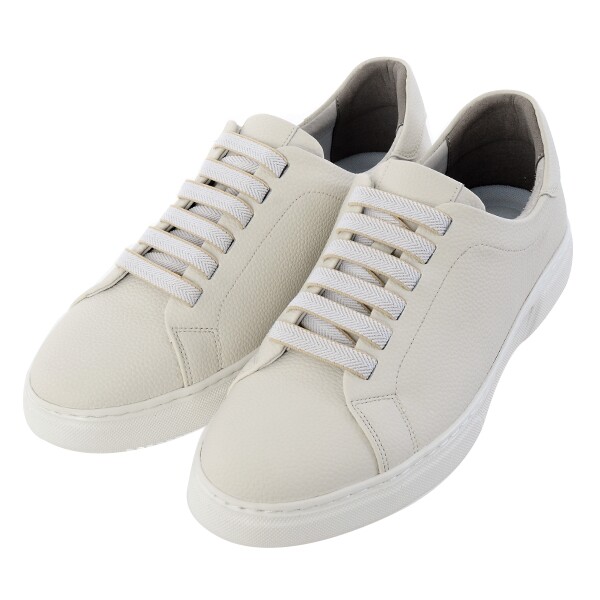 헤링본 무늬의 엘라스틱 밴드를 포인트로 적용한 깔끔한 어퍼의 미니멀 스니커즈.