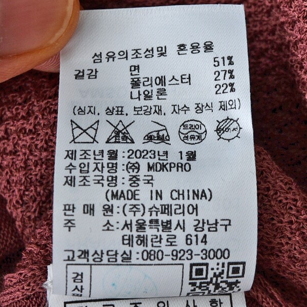 제품소재 : 면51%,폴리에스터27%,나일론22%
