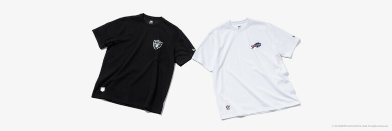 NFL 베이직 로고 티셔츠를 소개합니다. NFL에서 가장 터프한 팬덤을 소유한 라스베이거스 레이더스와 버펄로 빌스의 팀 마크를 전면 가슴에 배치한 베이직한 컬러와 스타일의 티셔츠로 기본 아이템으로 소장하기 좋은 컬렉션입니다. 뛰어난 통기성을 바탕으로 쾌적한 착용감을 자랑하는 쿨에라 원단을 사용한 NFL 베이직 로고 티셔츠를 지금 바로 만나보세요.