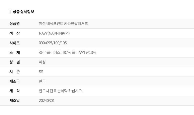 | 2. 색상 | NAVY(NA)/PINK(PI) |