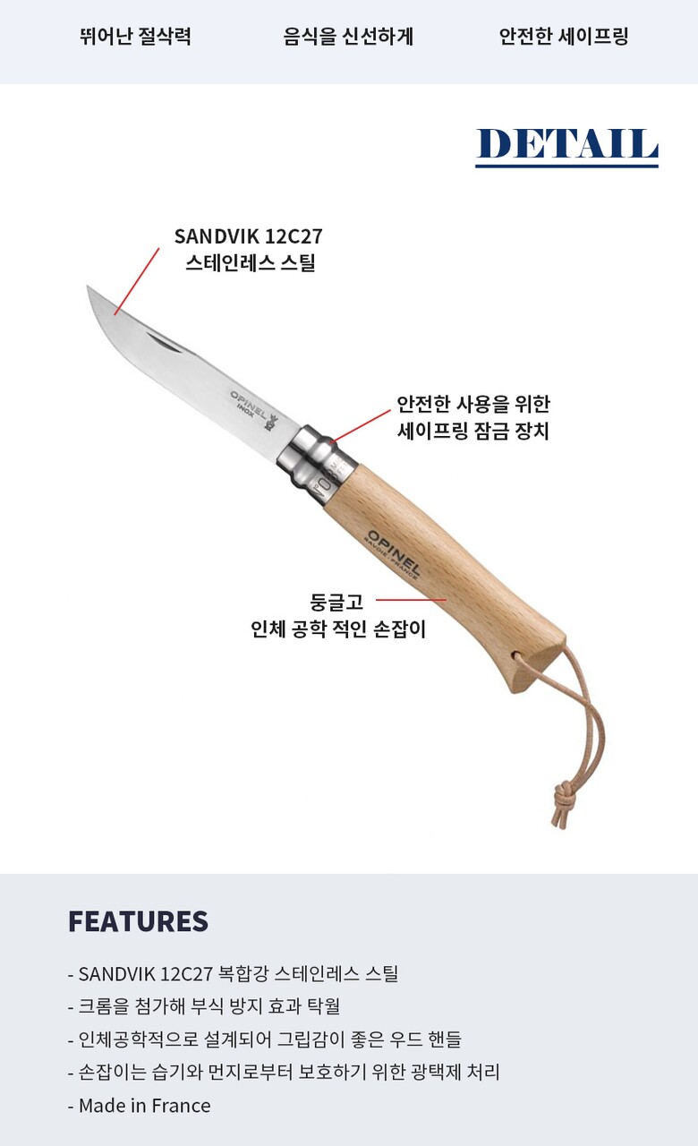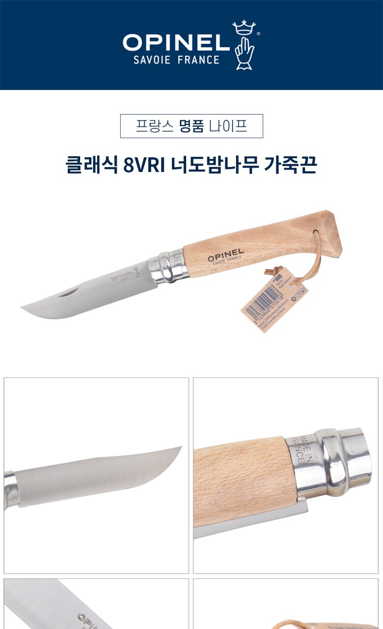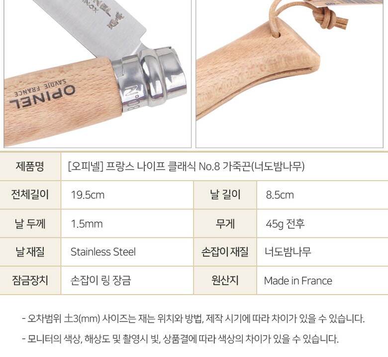 [OPINEL] 프랑스 나이프 클래식 8 너도밤나무 가죽끈