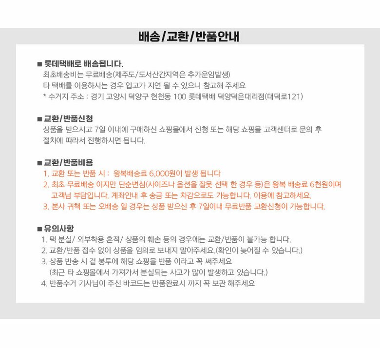 | 6. 세탁방법 및 취급시 주의사항 | 상품상세참조 |