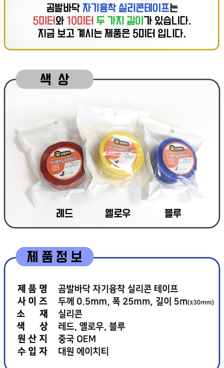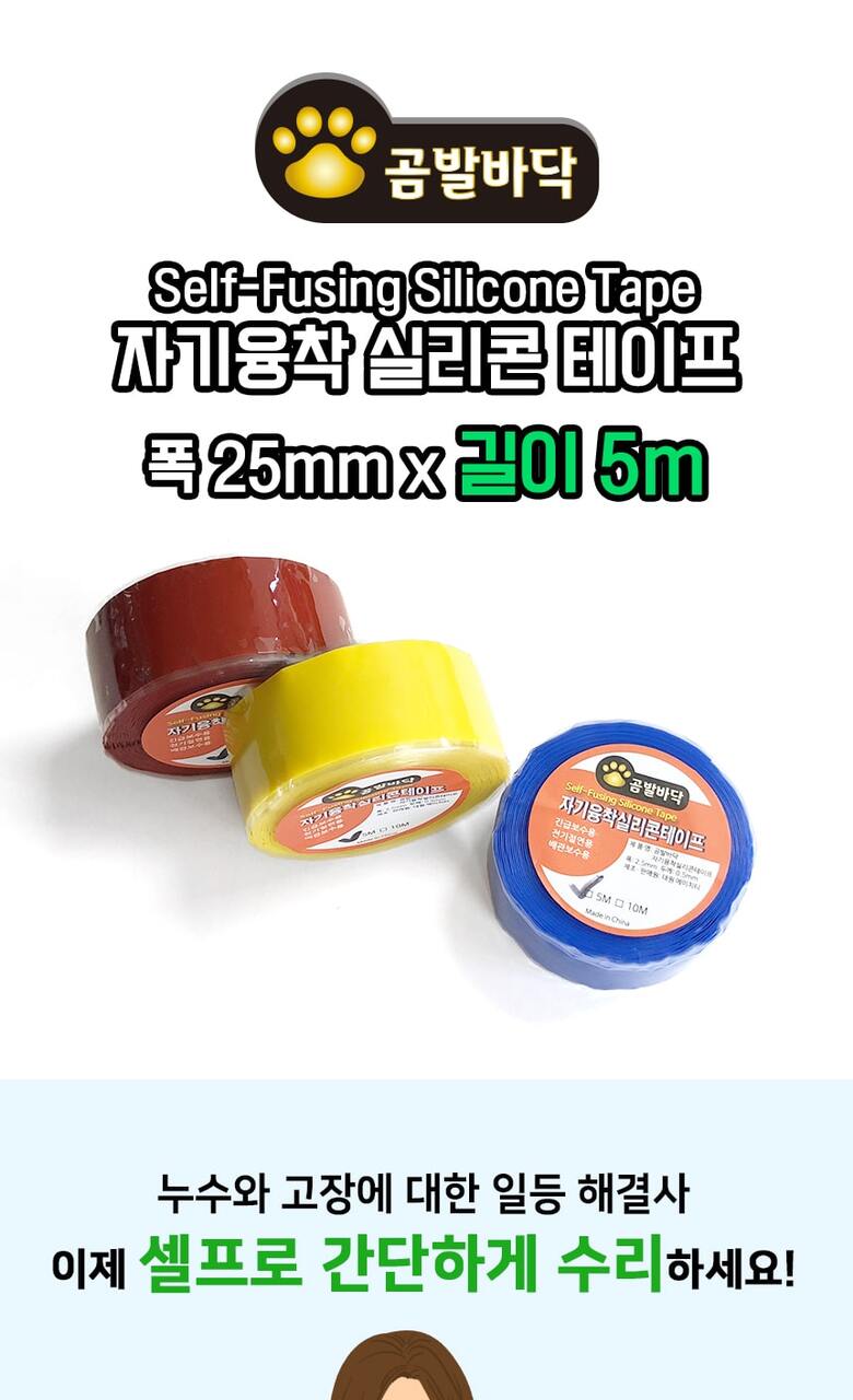 곰발바닥 자기융착 실리콘테이프 5미터 배관 방수 전기 셀프수리테이프