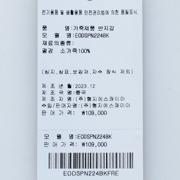 제조자 : (주)형지에스콰이아